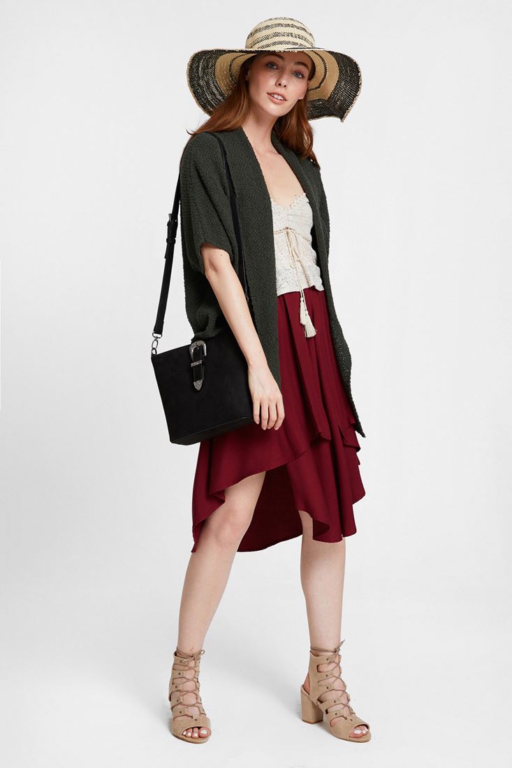 Volan Detaylı Etek modeli, viskon kumaşı sayesinde sahip olduğu mükemmel dokuyu sizlere en iyi şekilde sunuyor. kadın etek modeli, asimetrik kesimi ve lastikli bel tasarımıyla üstün şıklığı gözler önüne seriyor. Kadın volanlı etek modeli ile tarzınıza uygun Oxxo kadın dantelli bluz veya crop bluz modelleri kullanarak oluşturduğunuz stillle, enerjinizi yükseltebilirsiniz. kadın etek modeli ile şıklığınızı tamamlamak için kadın topuklu ayakkabı modelleri tercih ederek, muhteşem kombinlerin keyfini çıkarabilirsiniz. kadın volanlı etek modeli ile zevkinize göre seçeceğiniz salaş hırka modelleri eşliğinde benzersiz kombinler yapabilirsiniz. Oxxo'nun farklı kesimler ve eşsiz görünümlerle sizlere sunduğu kadın etek modelleri ile moda dünyasına fazlasıyla uyum sağlayabilirsiniz.