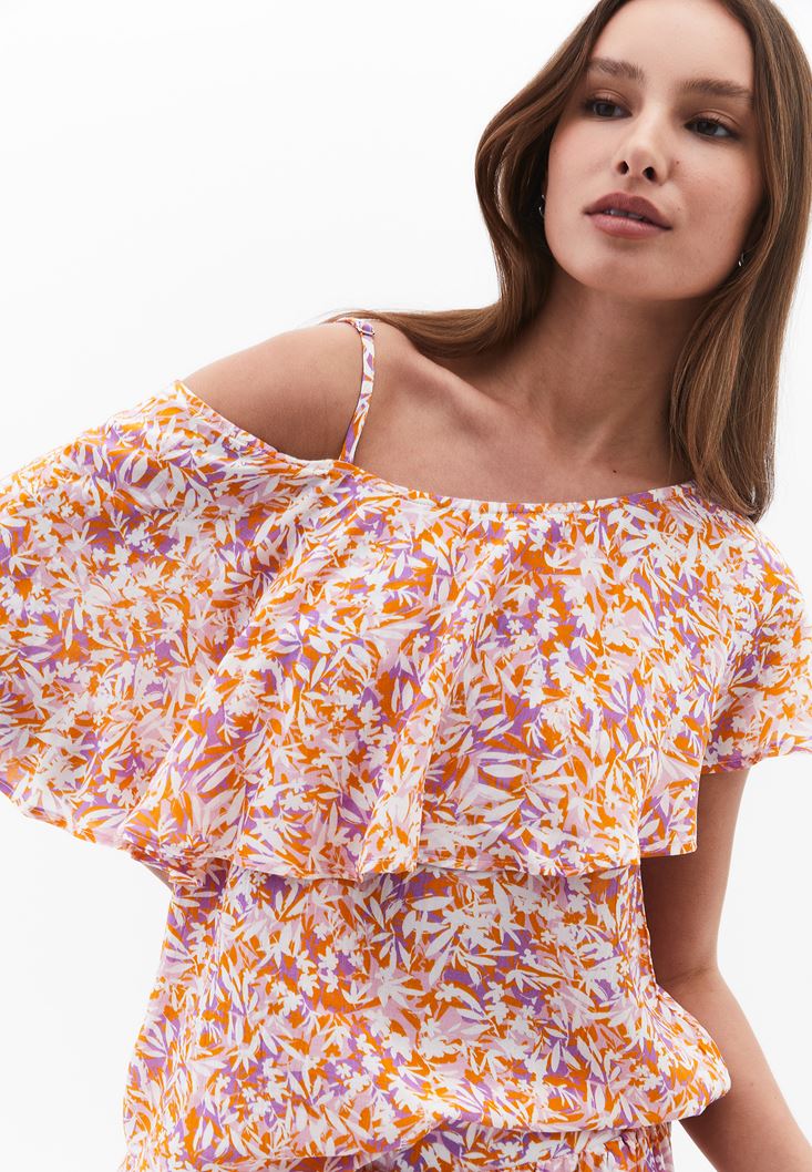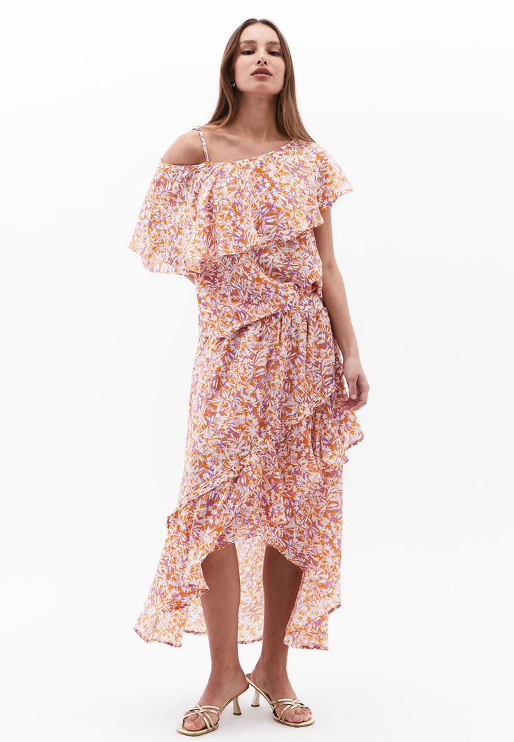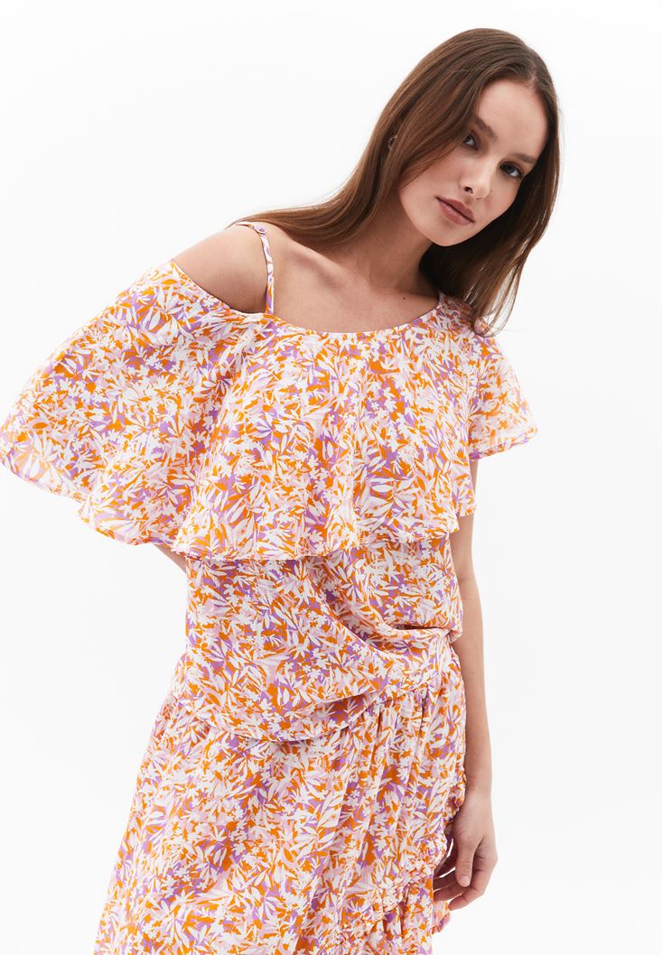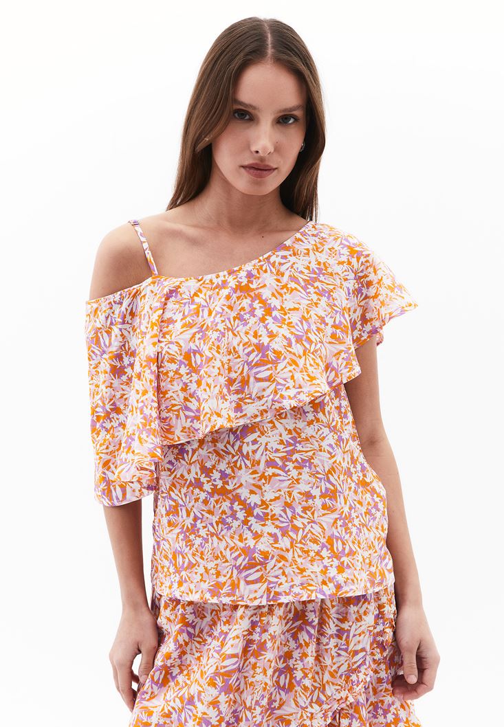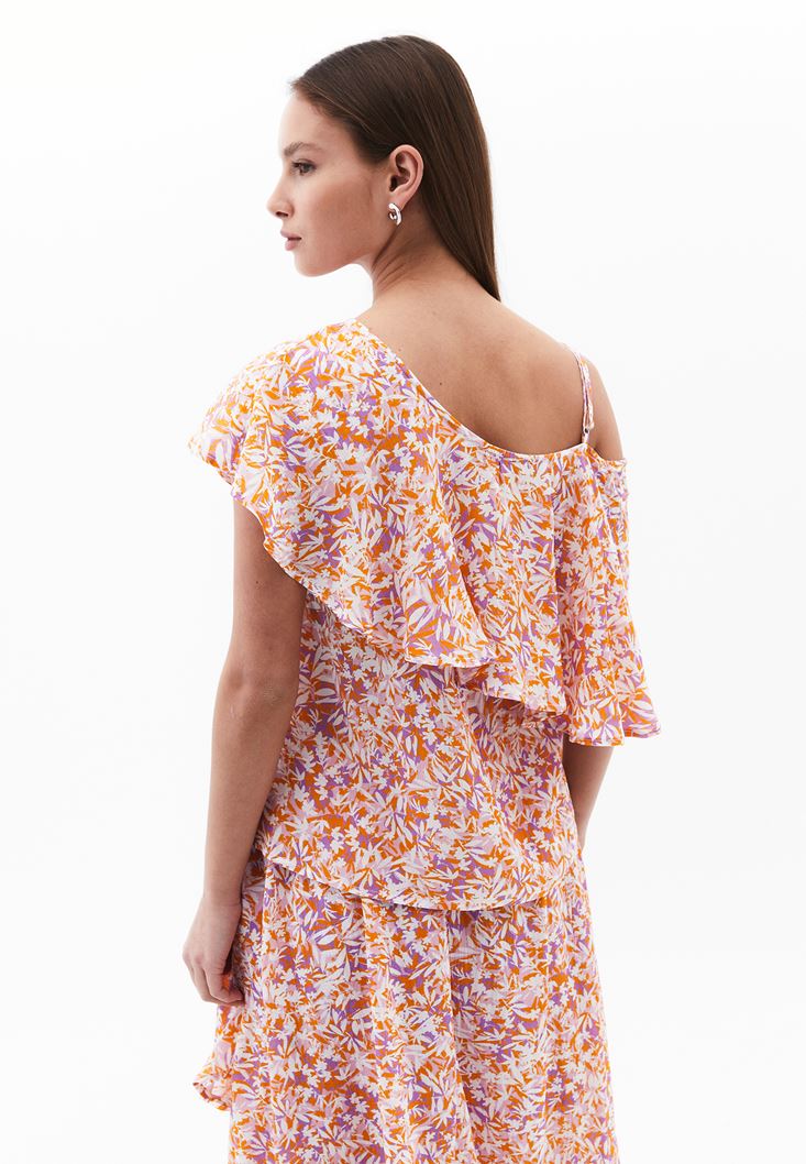 Volanlı Bluz ve Asimetrik Kesim Uzun Etek Kombini
