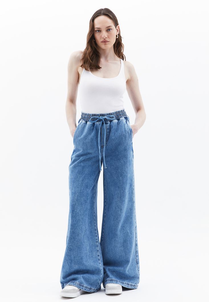 Orta Bel Deniim Pantolon ve Atlet Kombini