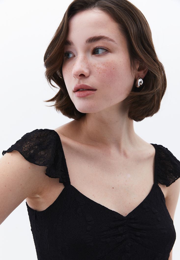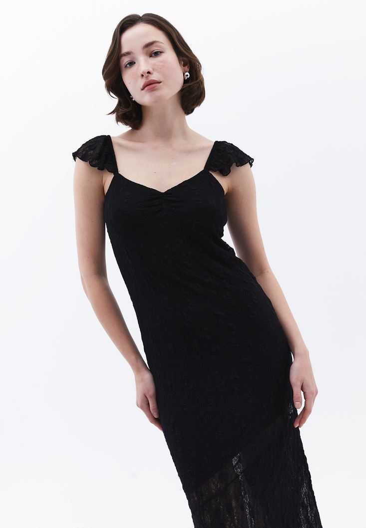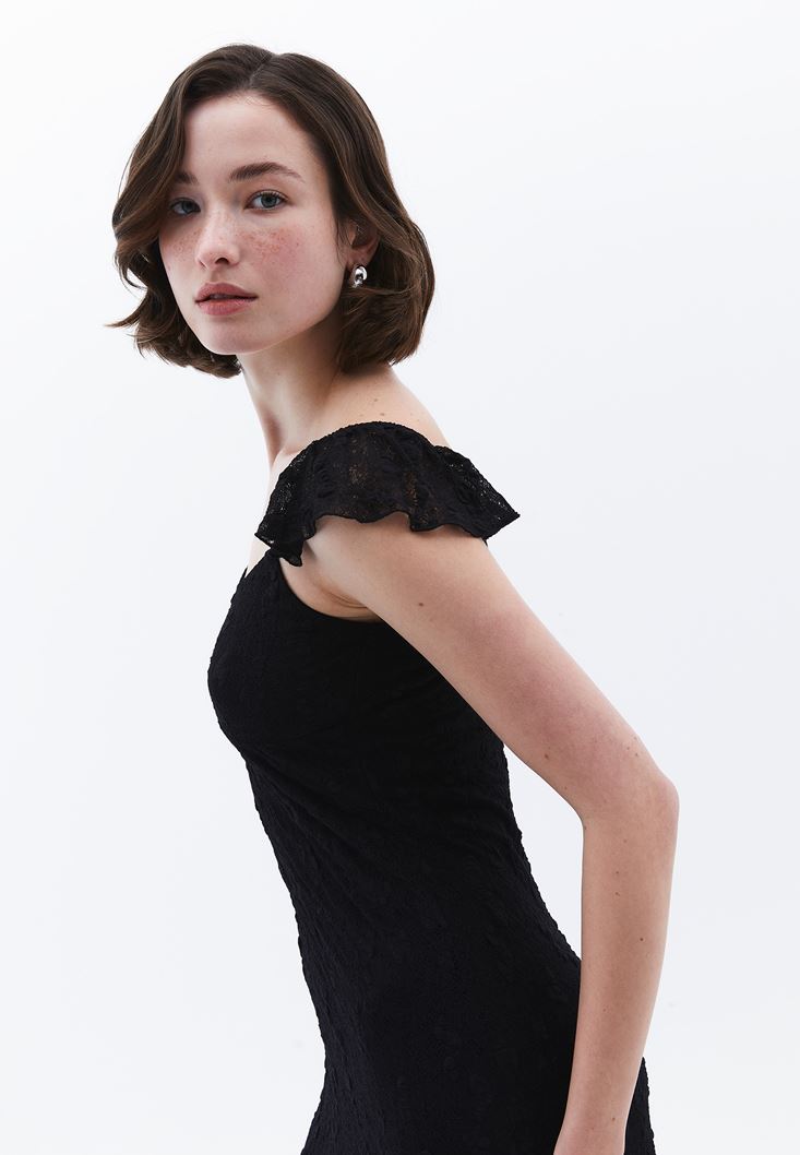 Volanlı Dantel Elbise
