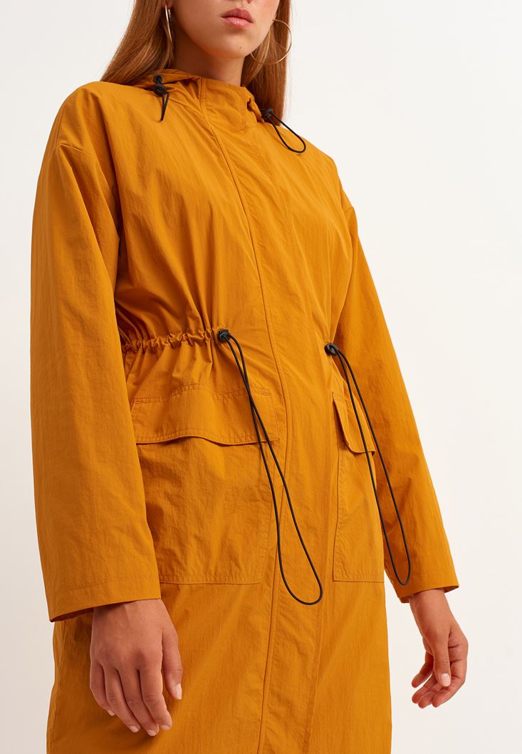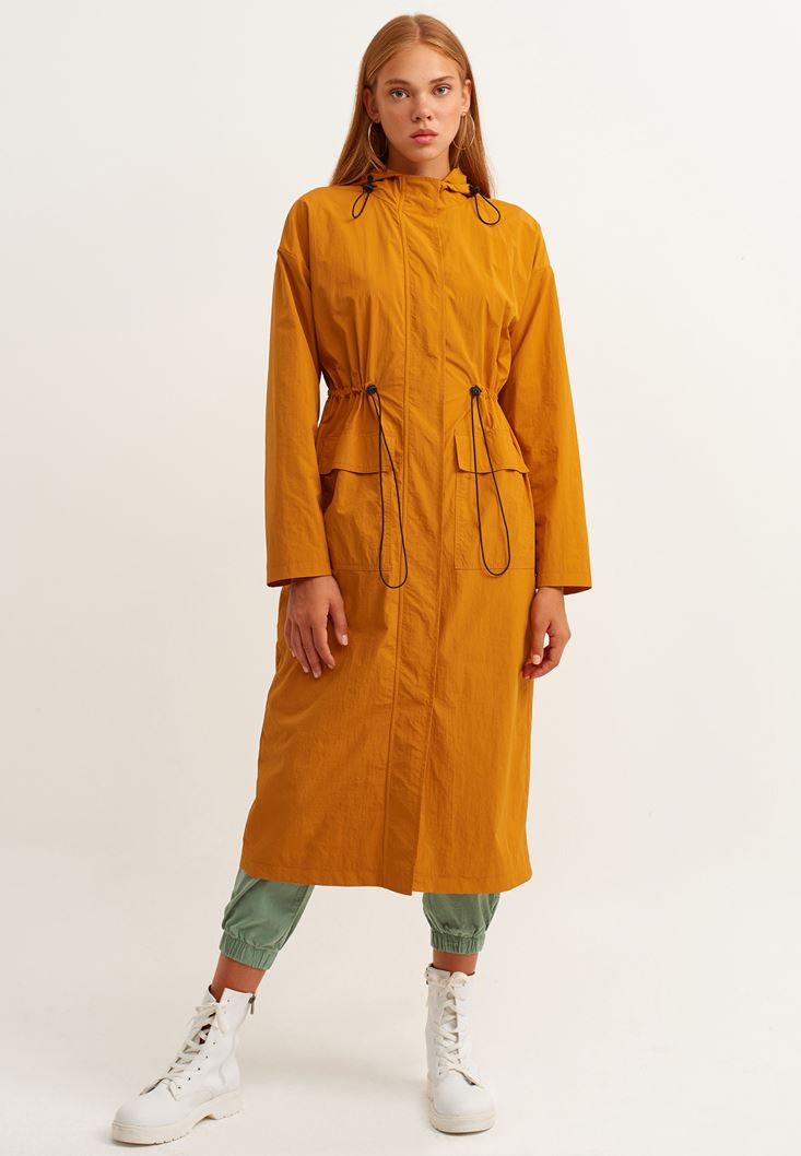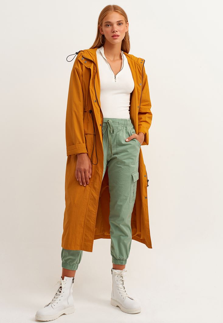 Su geçirmez özellikli bu uzun yağmurluk ile sonbahar ve kış aylarının keyfini çıkar! Uzun yağmurluk modeli, belden ayarlanabilir büzgülü yapısı, kapaklı cepleri ve kapüşon ayrıntısı ile senin olmayı bekliyor... Onunla birlikte casual kombinler yapabilmek için doğa dostu gömlekleri ve joggerları bir araya getirebilirsin. Böyle bir kombinle arkadaş buluşmalarına veya hafta sonu etkinliklerine dahil olmaya hazırsın. :)