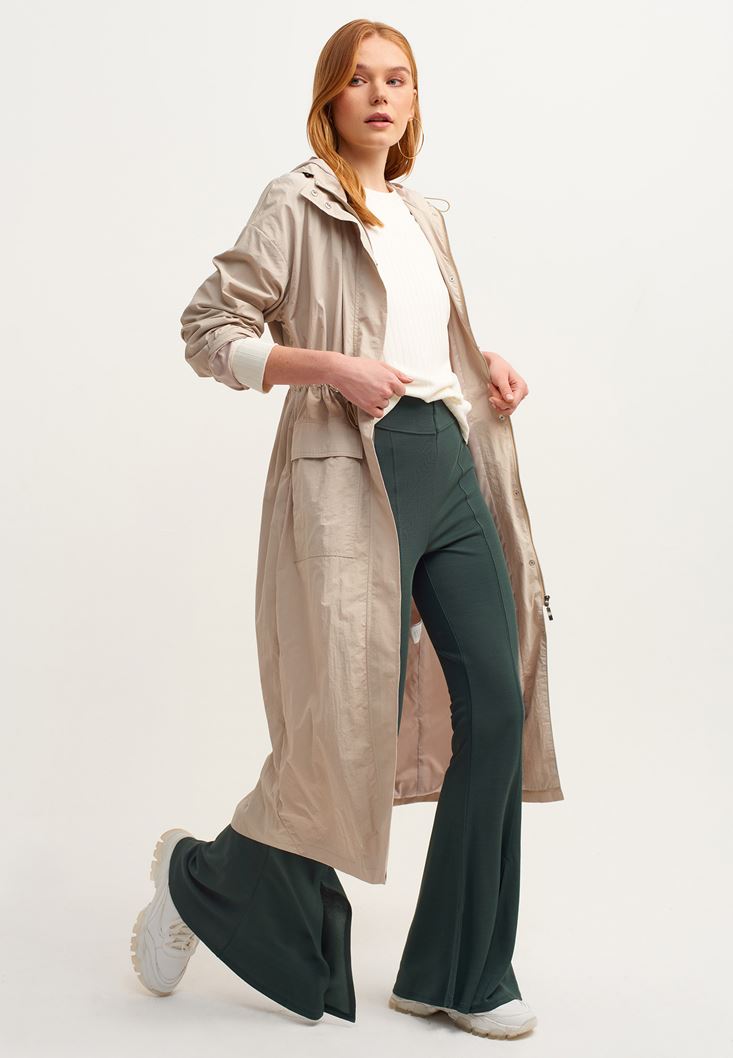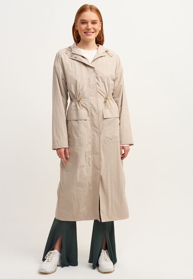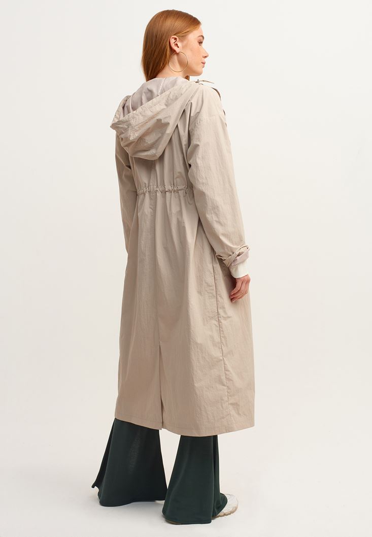 • Bayan Ekru Waterproof Uzun Yağmurluk