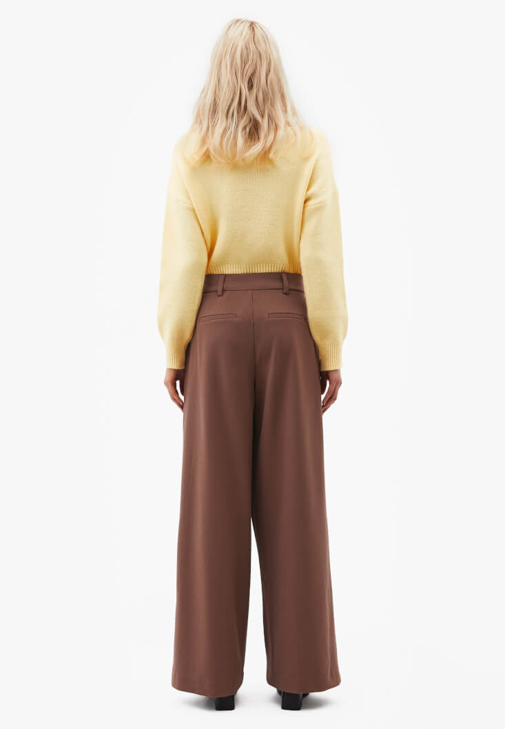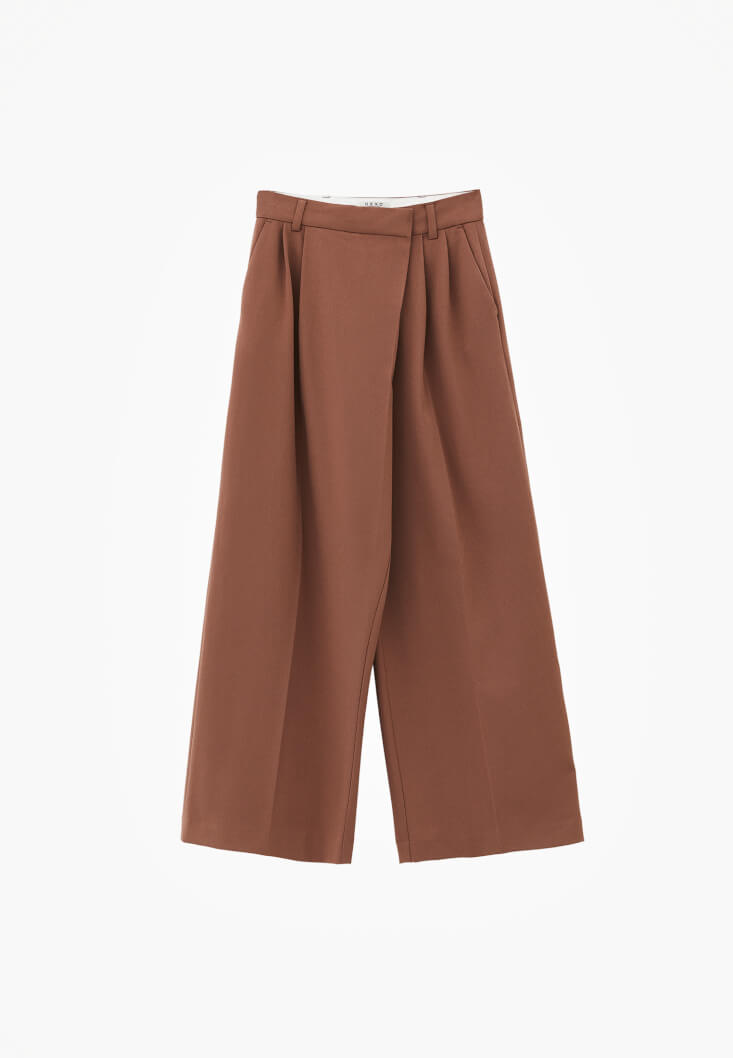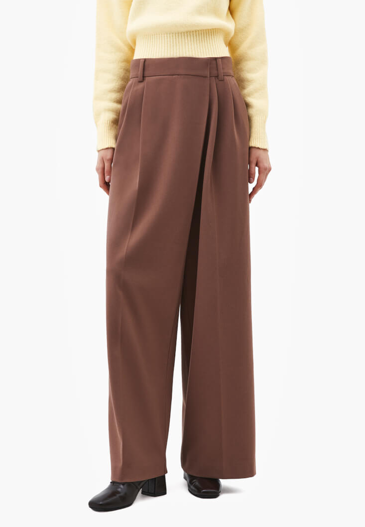 • Bayan Kahverengi Wide-Leg Asimetrik Pantolon