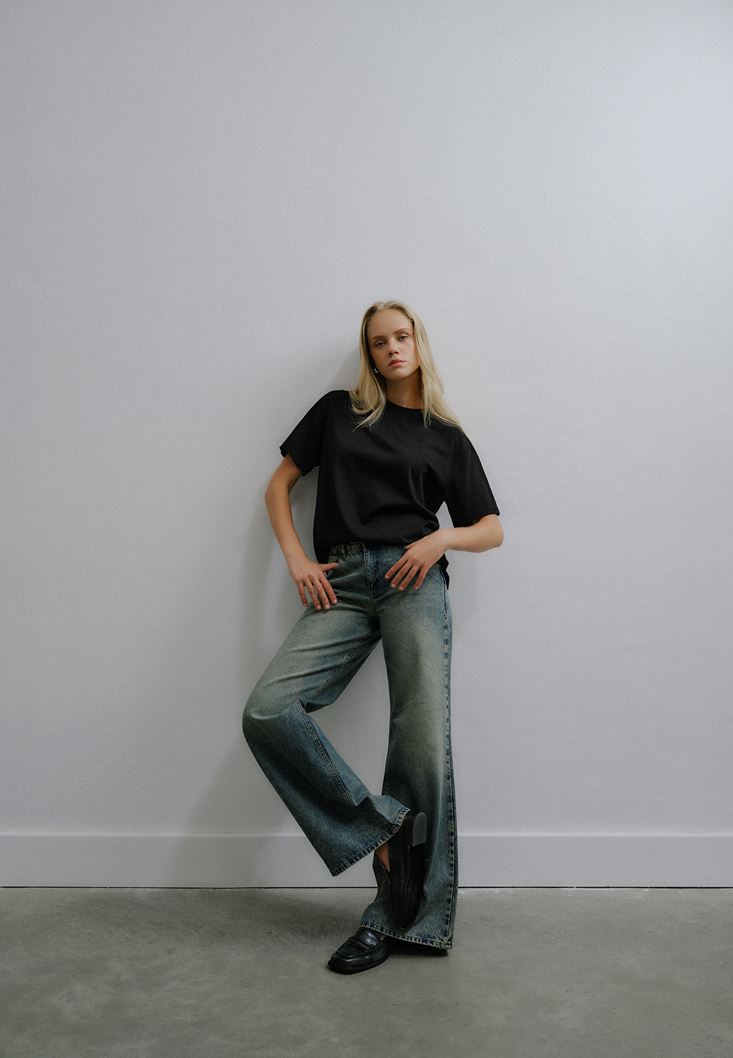 Wide-Leg Denim Pantolon ve Tişört Kombini