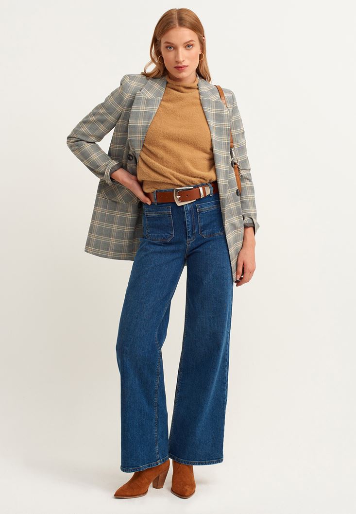 • Bayan Mavi Wide-Leg Denim Pantolon