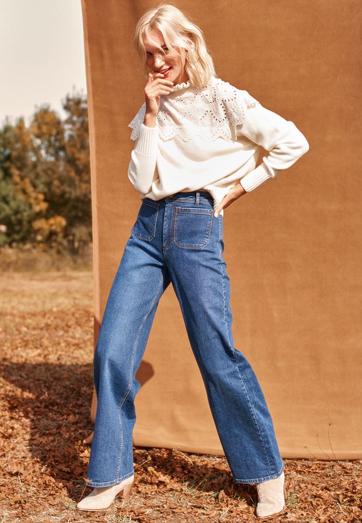 Yüksek pamuk içerikli ve ultra yüksek bel duruşuna sahip olan bu pantolon senin olmalı! Wide-leg duruşu rahatlığı desteklerken bütün gün jean kombinin sana enerji verebilir... Denim pantolon modelini dilediğin gibi sweatshirtlerle veya klasikliğin gücüne ulaştıran blazer ceketlerle buluşturabilirsin. Mükemmel jean kombini için ideal seçenek olan denim pantolon modeli şimdi seni bekliyor! :)