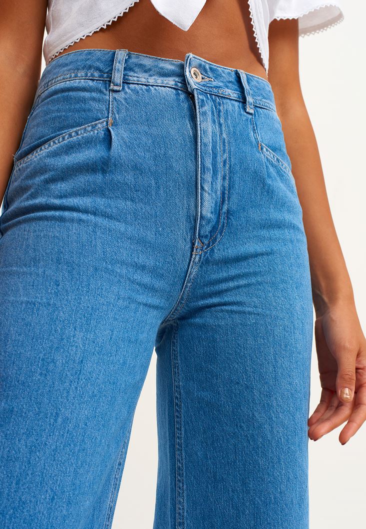 • Bayan Mavi Wide-Leg Denim Pantolon