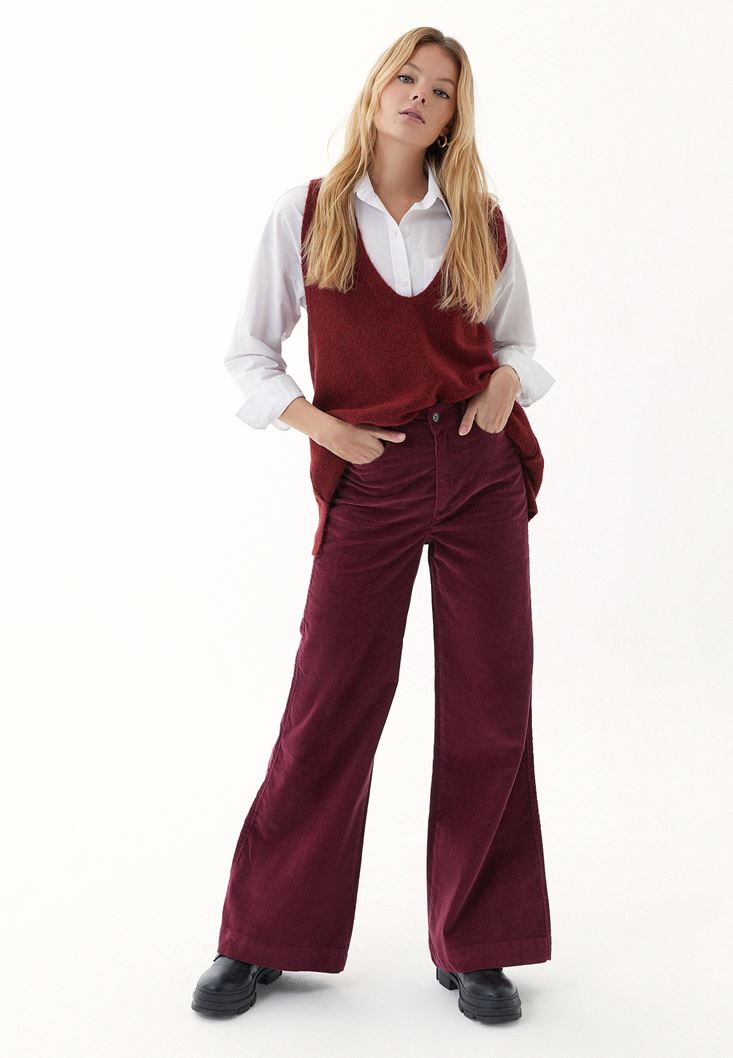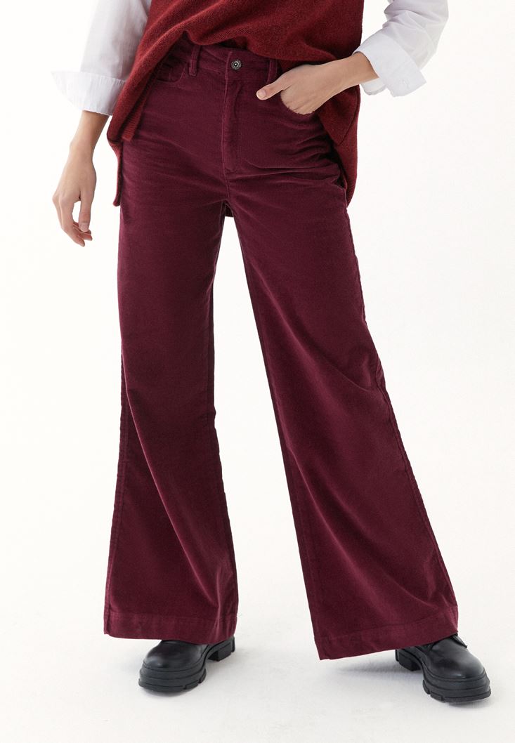 • Bayan Bordo Wide-Leg Kadife Pantolon