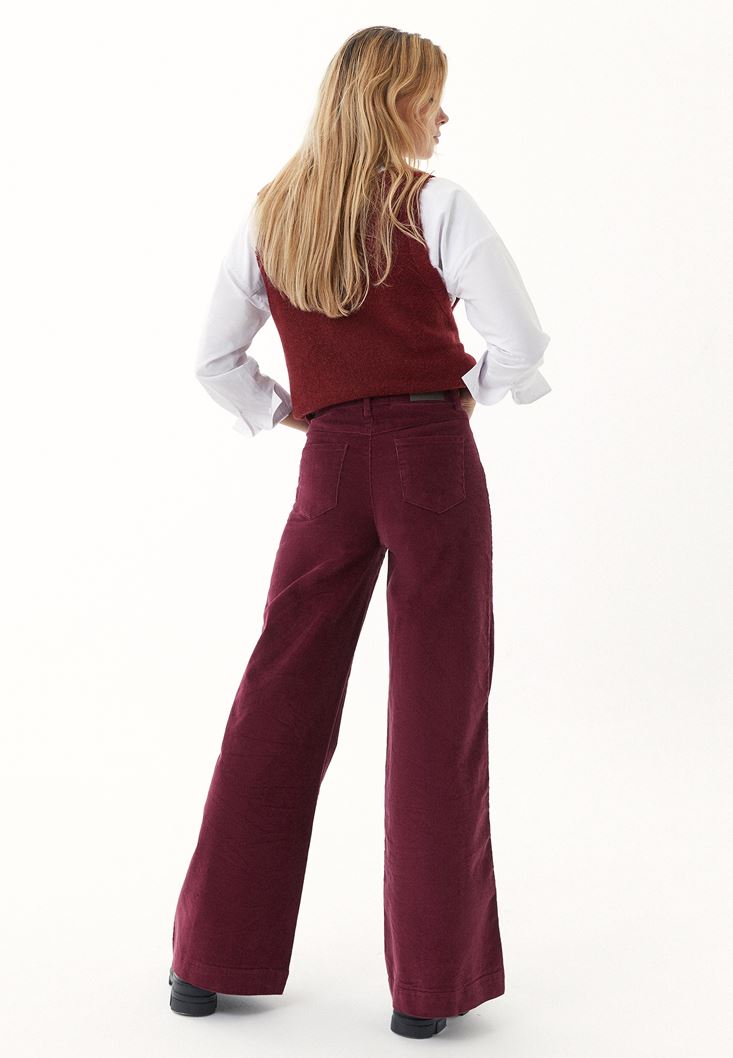 Pamuk karışımlı içerik, fitilli kadife doku, ultra yüksek bel, bol paça, bedenden uzak rahat fit, önü ve arkası iki cepli.