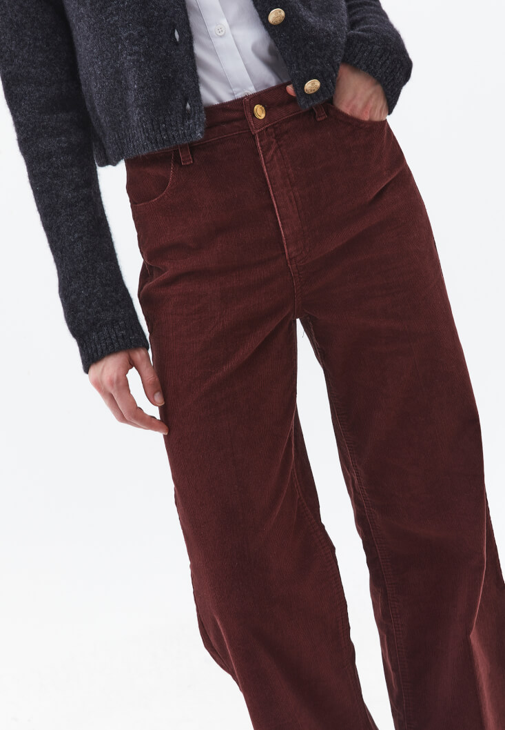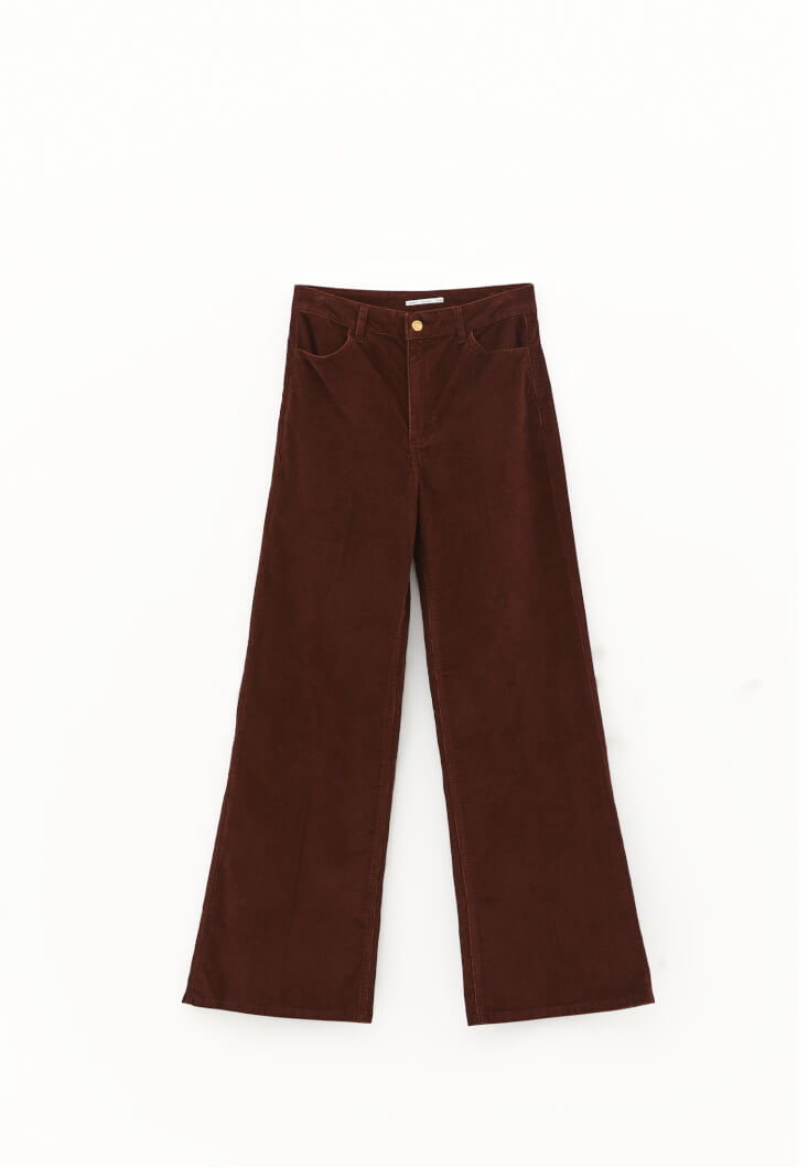 • Bayan Kahverengi Wide-Leg Kadife Pantolon