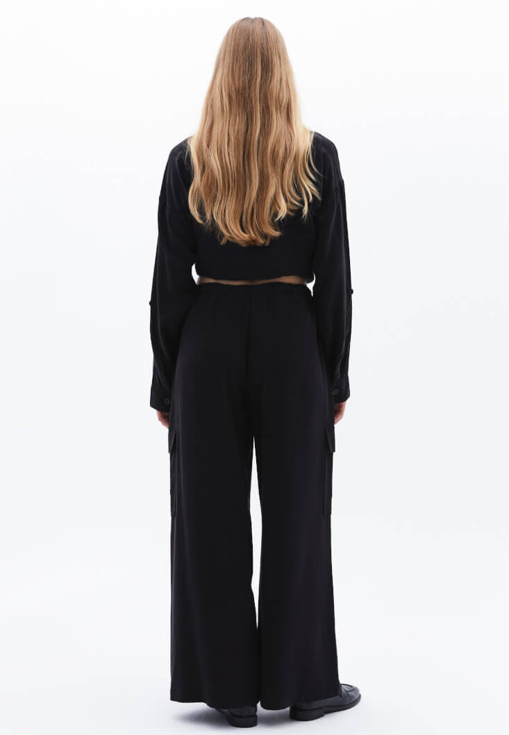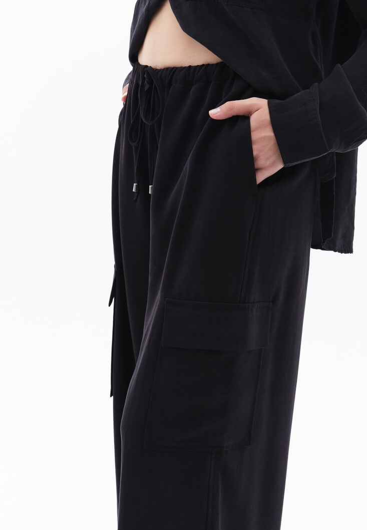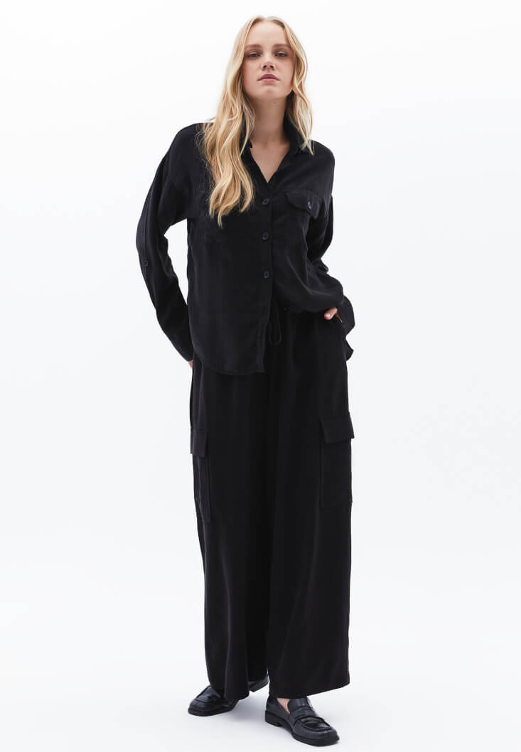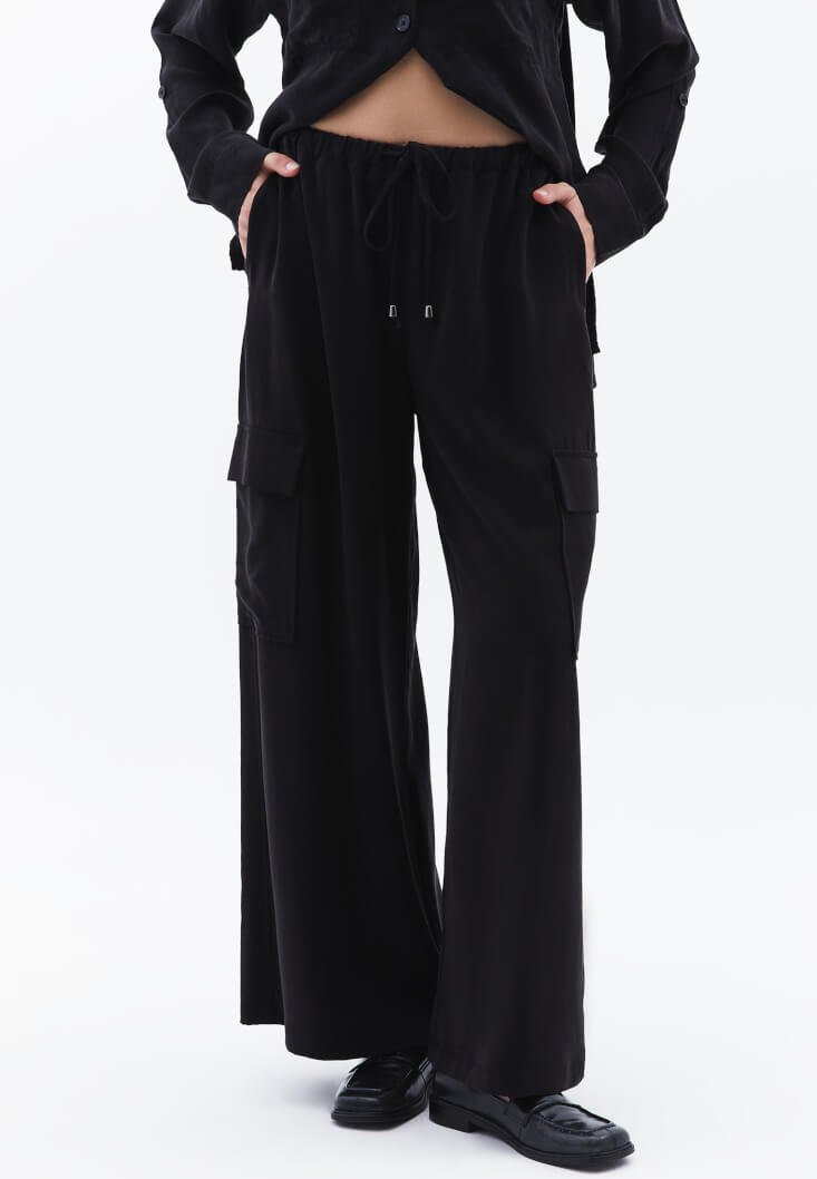 • Bayan Siyah Wide-Leg Pantolon ( TENCEL™ )