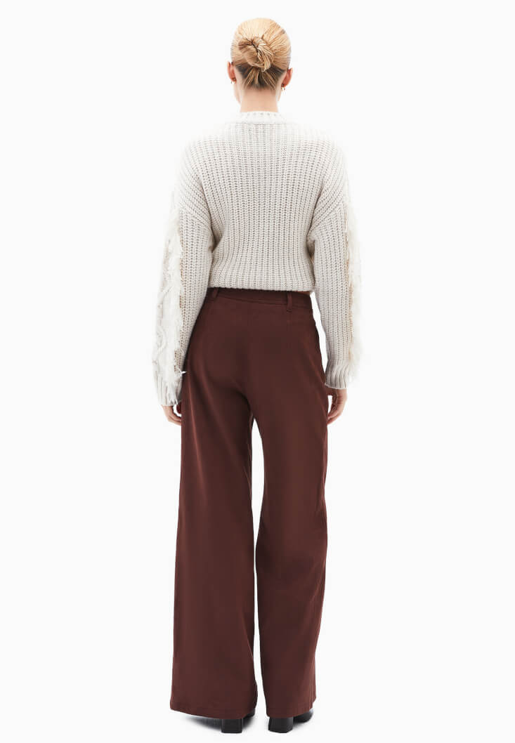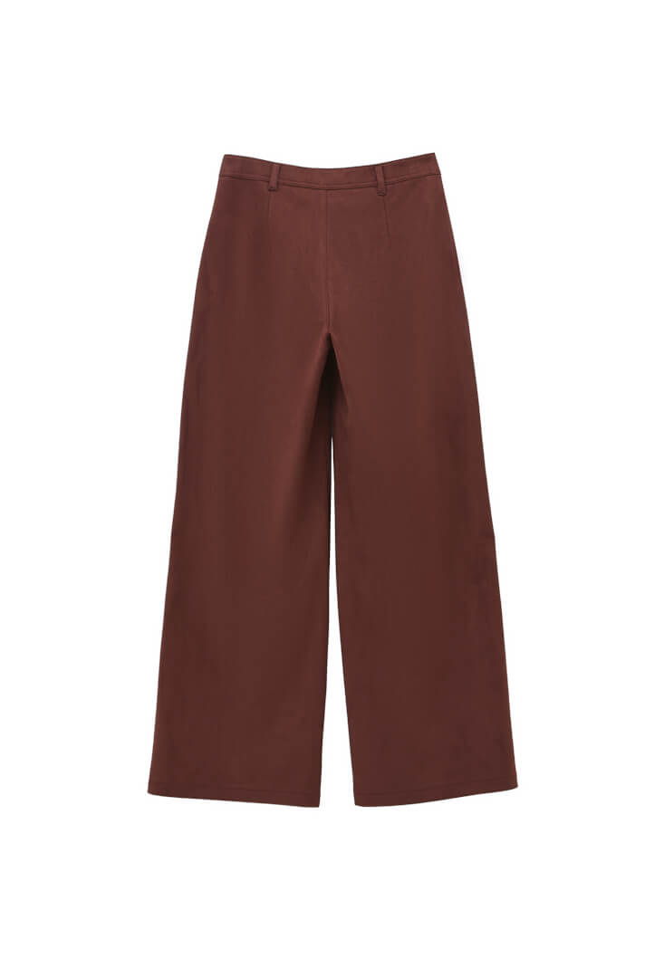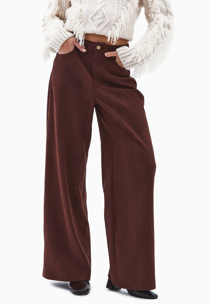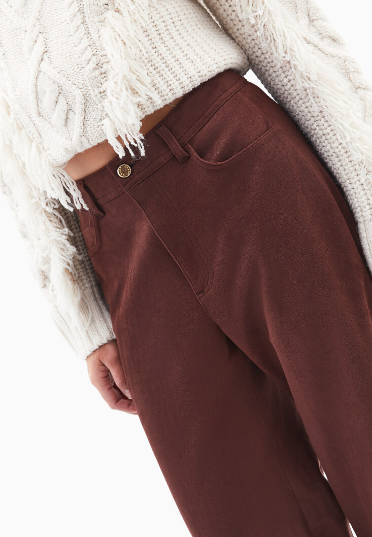 • Bayan Kahverengi Wide-Leg Süet Pantolon