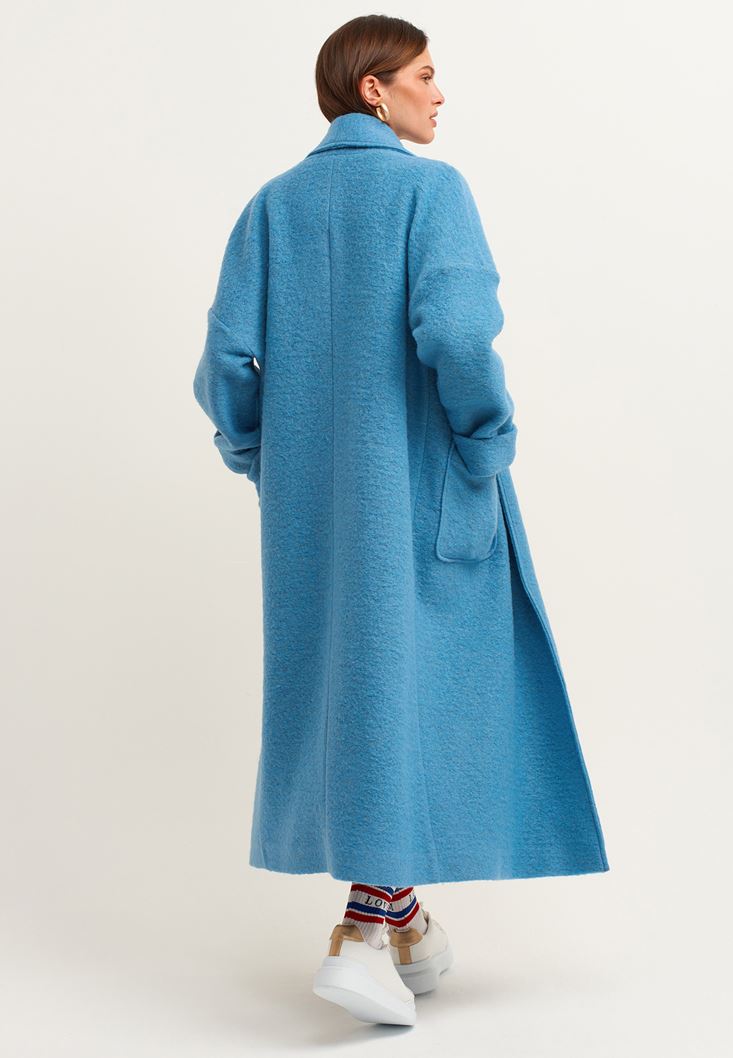 Mavi Wool Blend Uzun Cepli Kaban