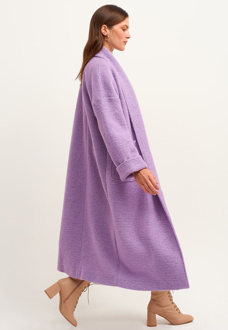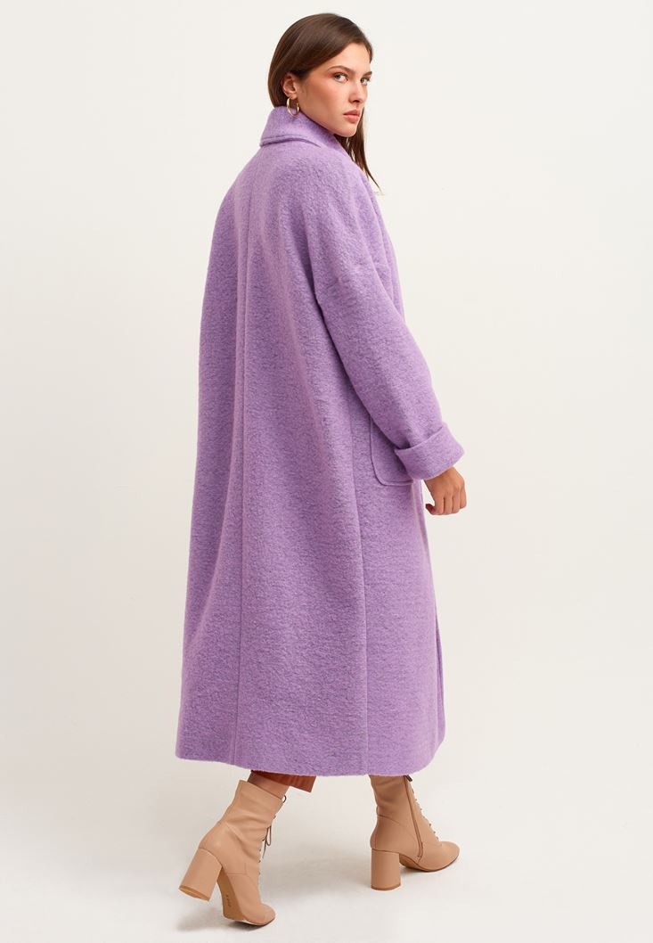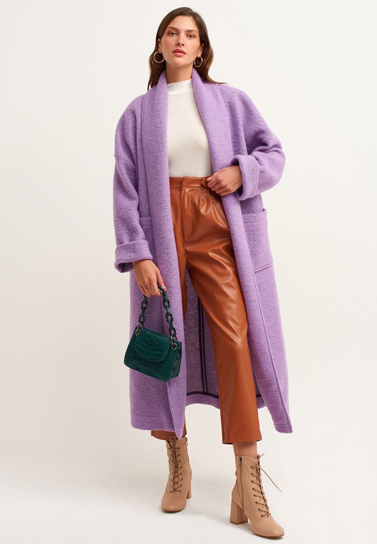 • Bayan Mor Wool Blend Uzun Cepli Kaban