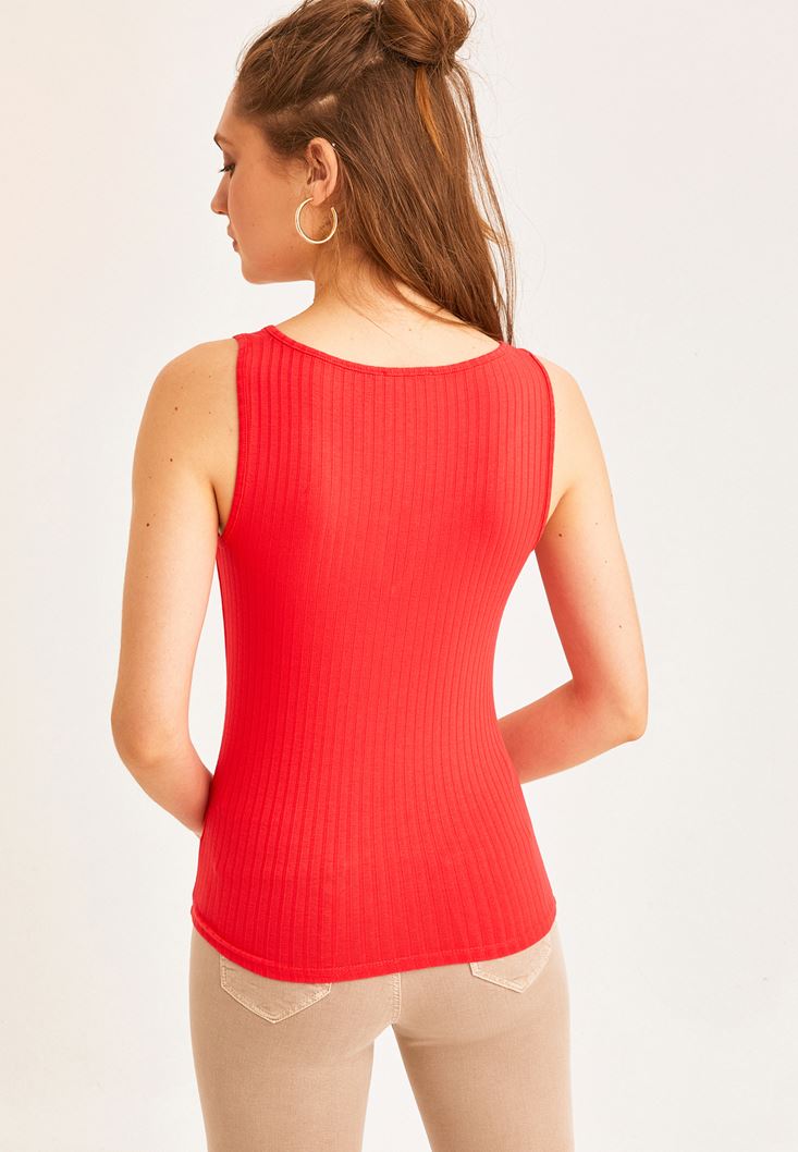 • Bayan Kırmızı Yaka Detaylı Atlet