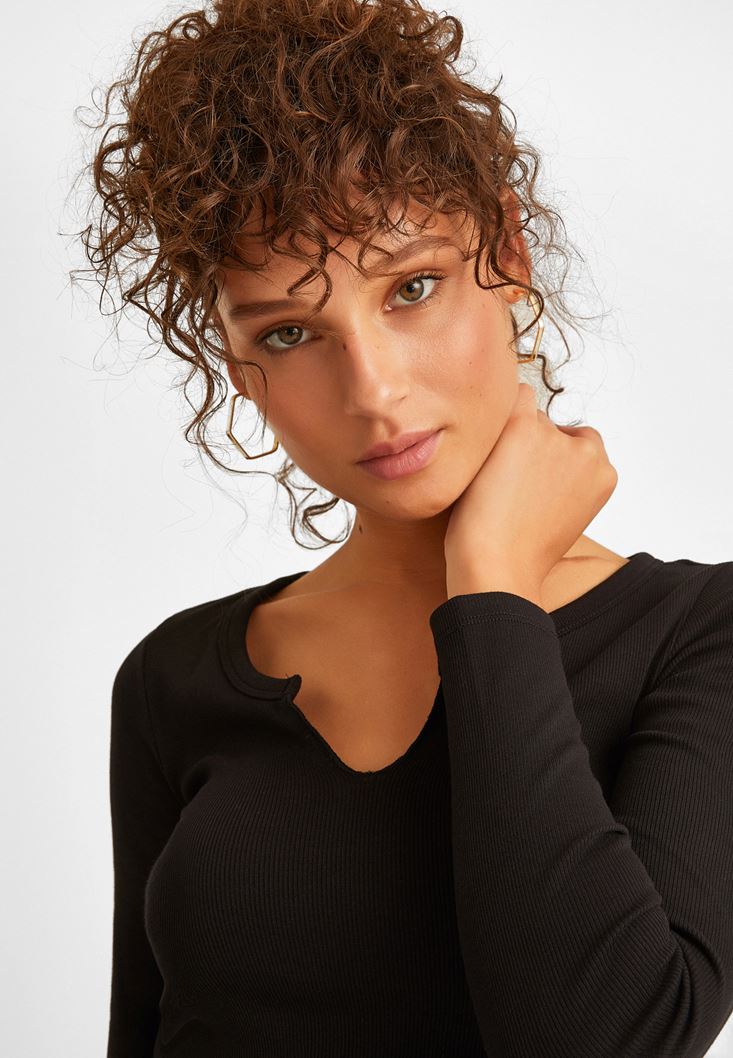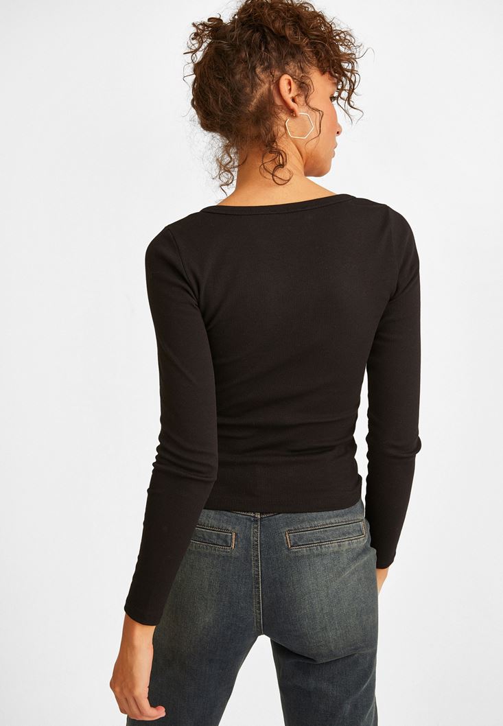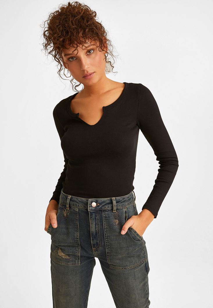Siyah Yaka Detaylı Bluz
