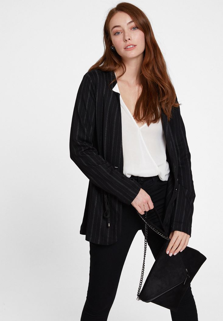 • Bayan Siyah/Beyaz Yaka Detaylı Çizgili Ceket