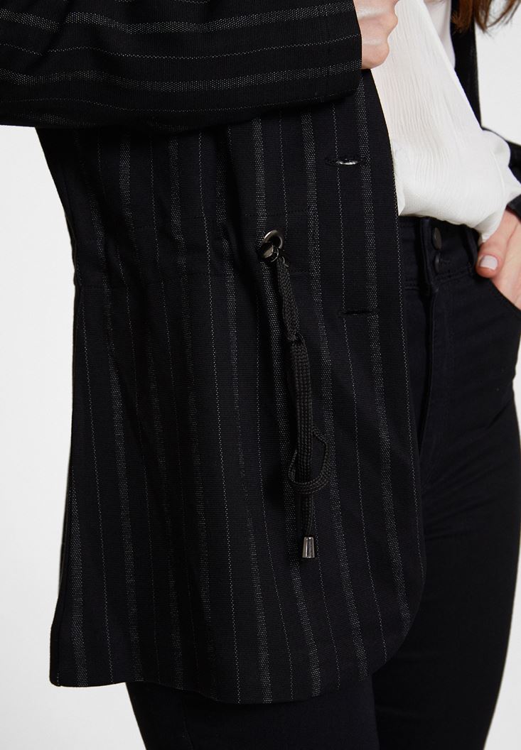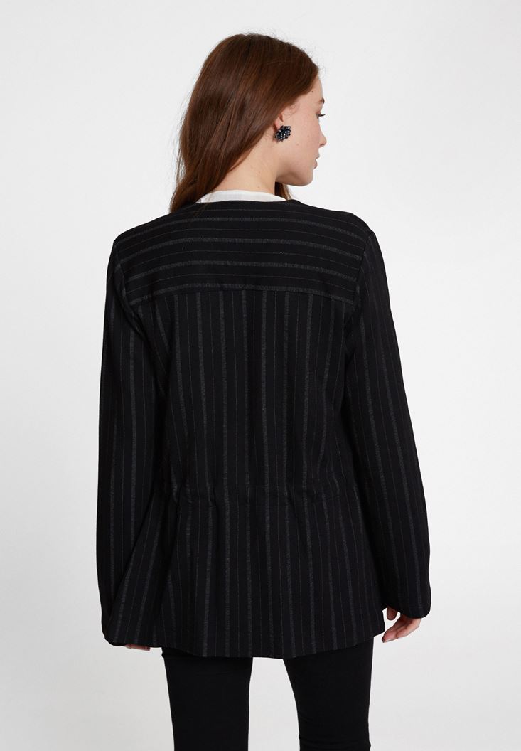 Siyah/Beyaz Yaka Detaylı Çizgili Ceket