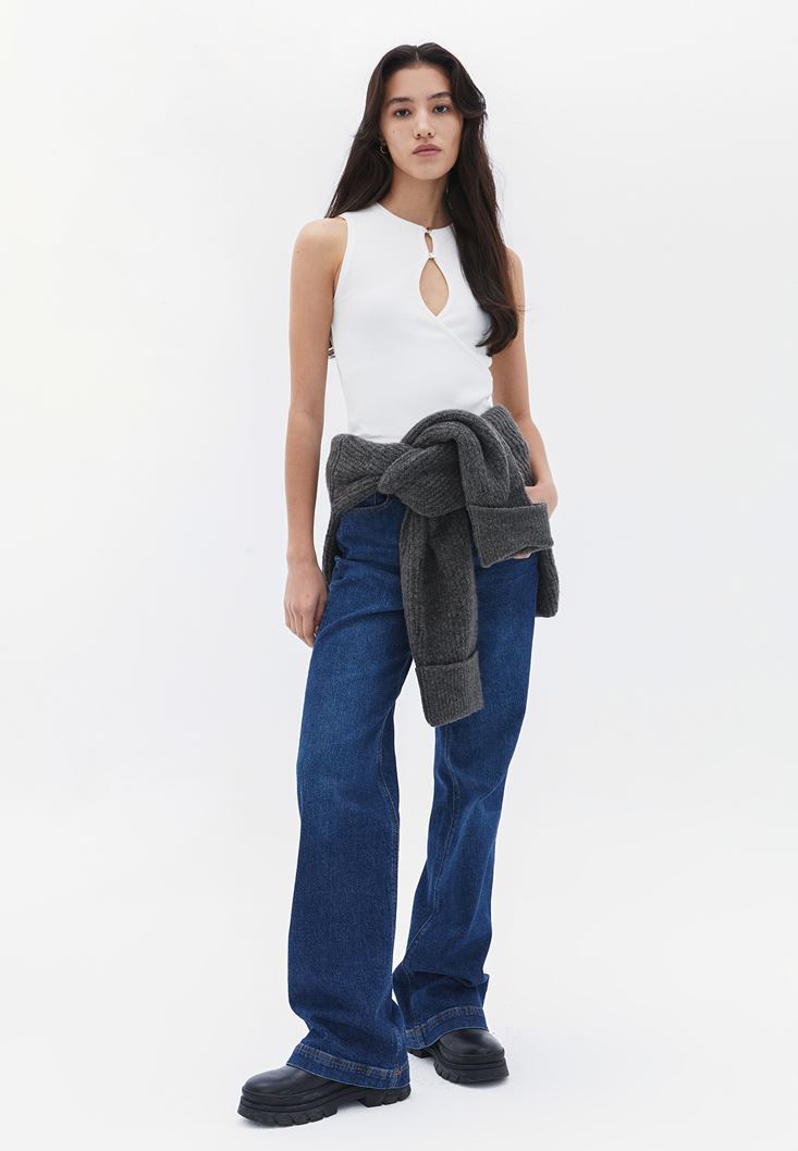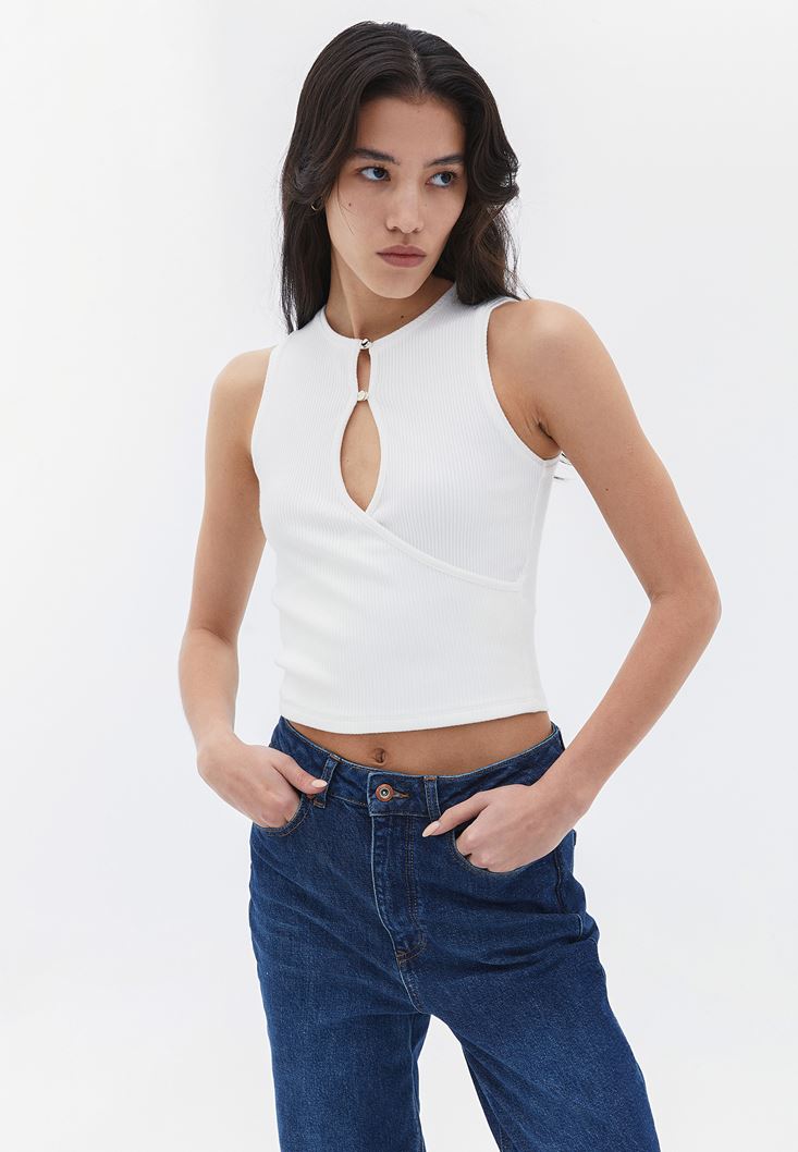 • Bayan Krem Yaka Detaylı Crop Atlet