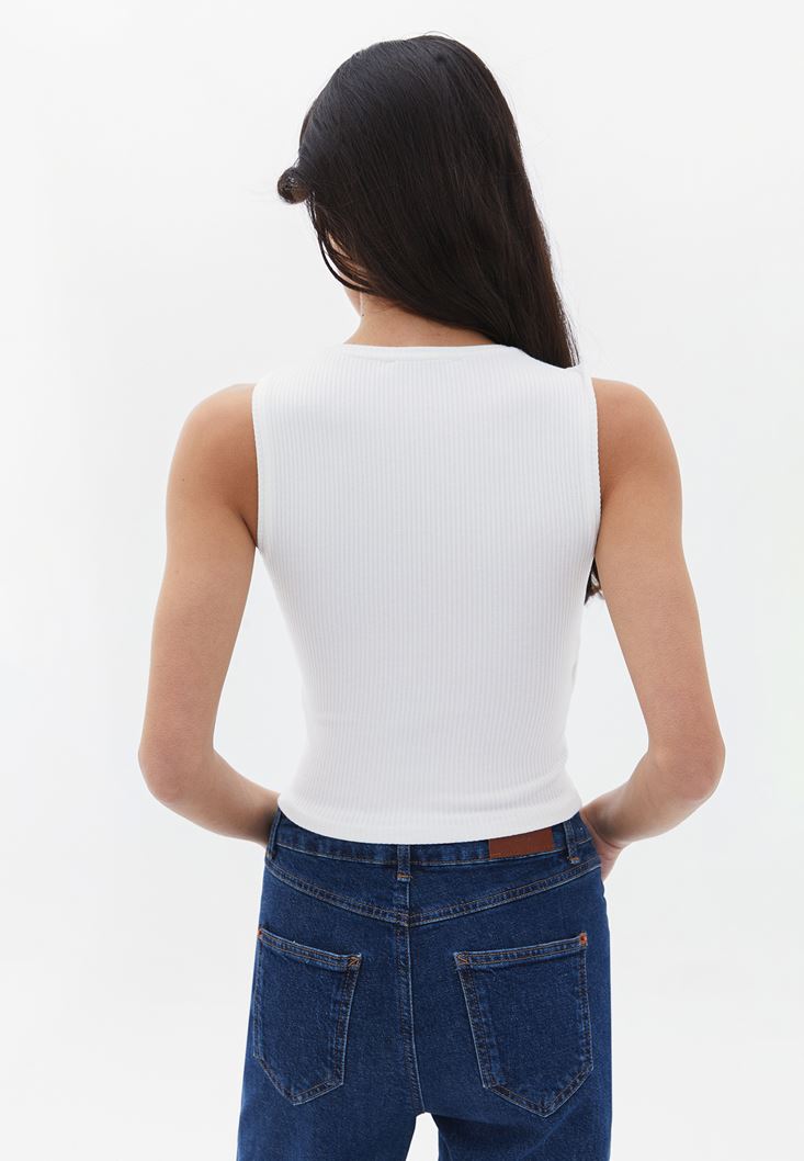 Krem Yaka Detaylı Crop Atlet