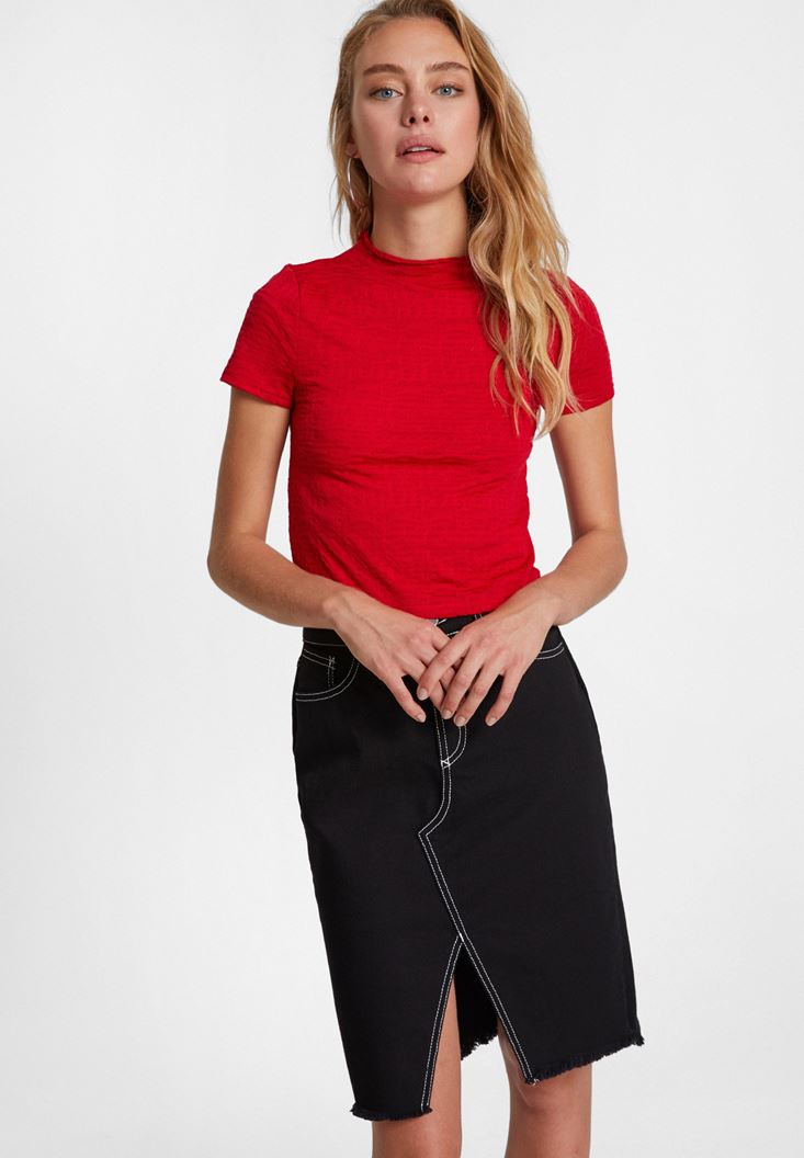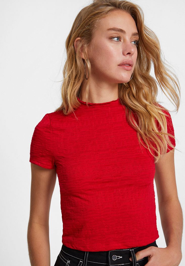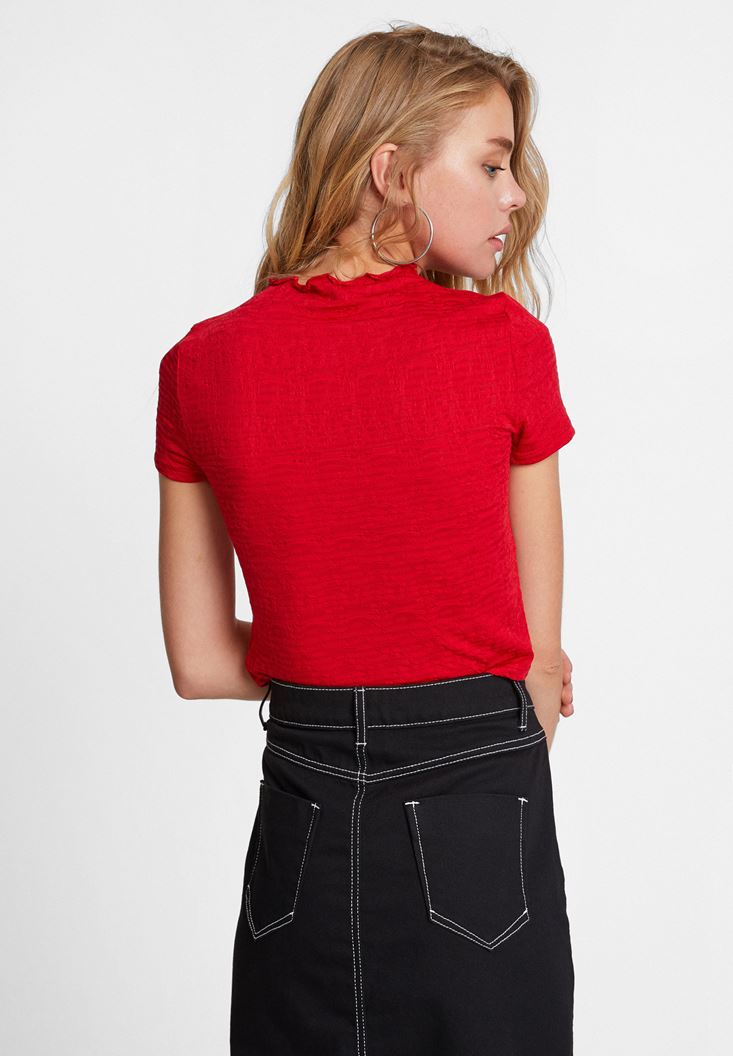 Kırmızı Yaka Detaylı Crop Top