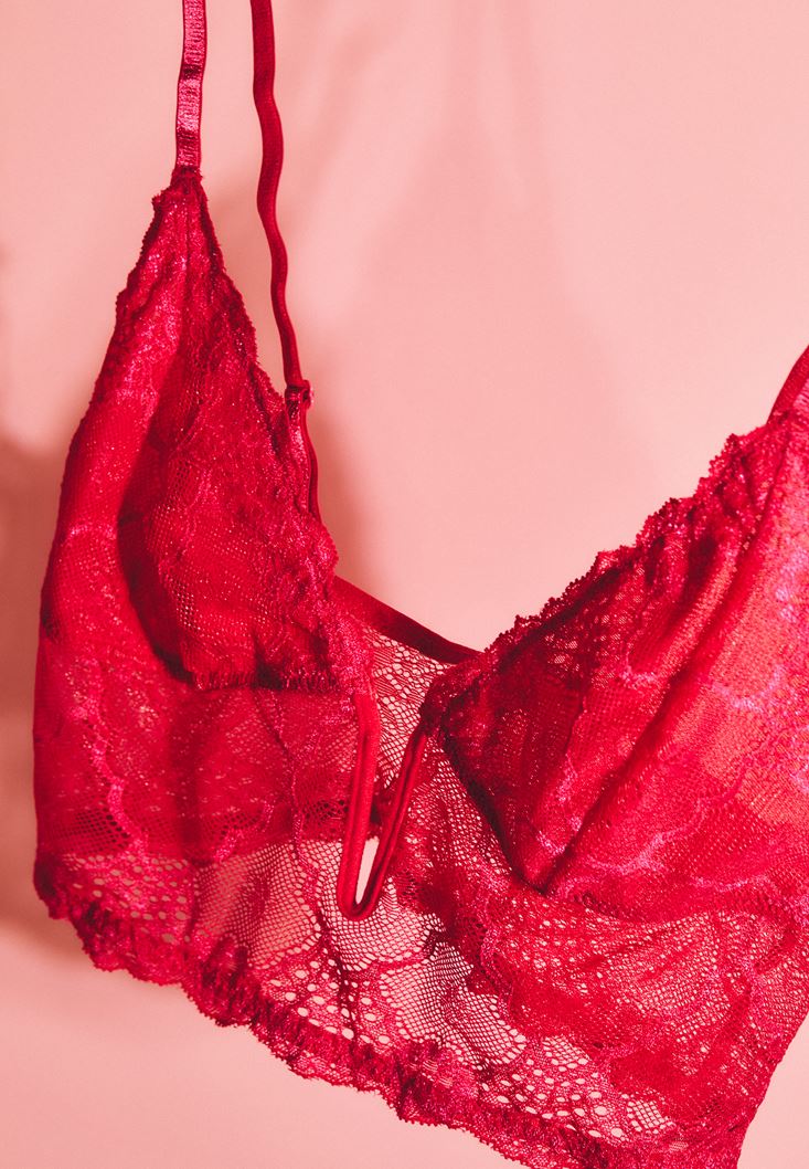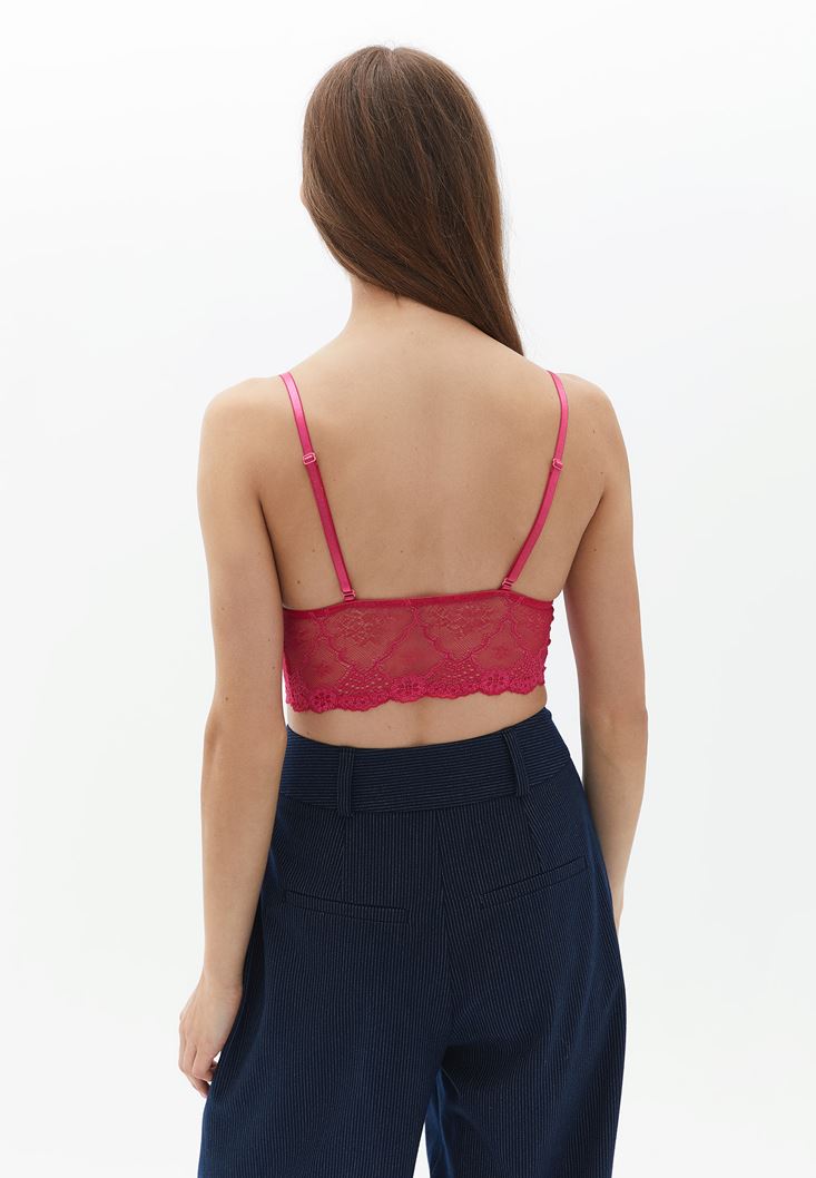 • Bayan Pembe Yaka Detaylı Dantel Bralet