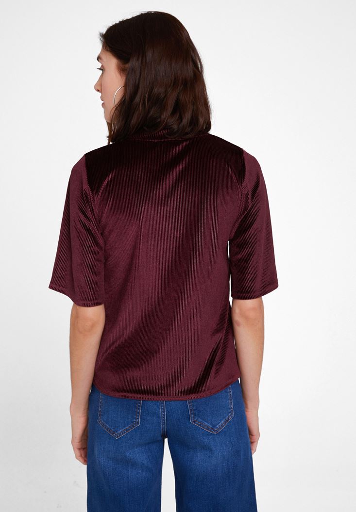 • Bayan Bordo Yaka Detaylı Kadife Bluz