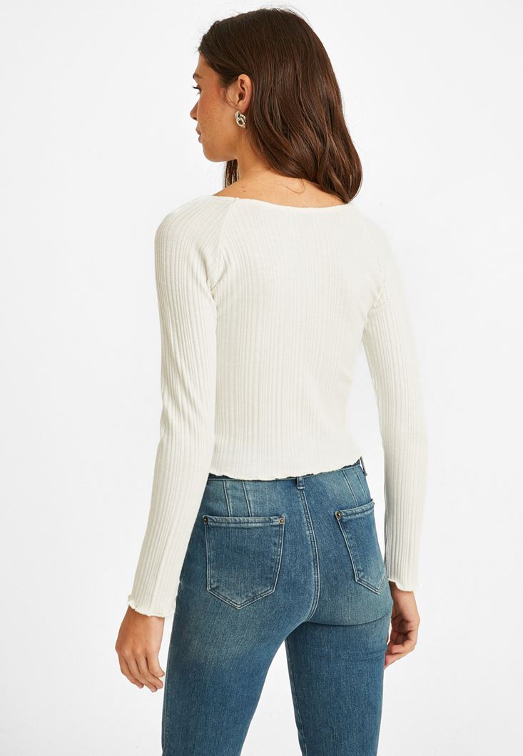 • Bayan Krem Yaka Detaylı Kısa Bluz