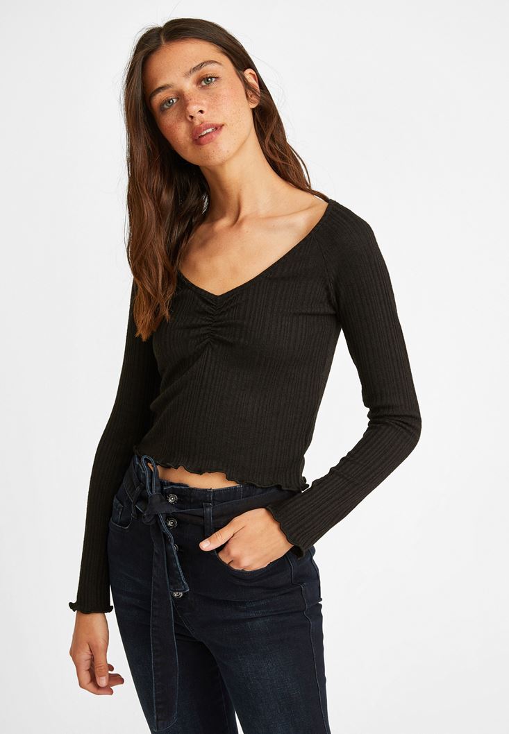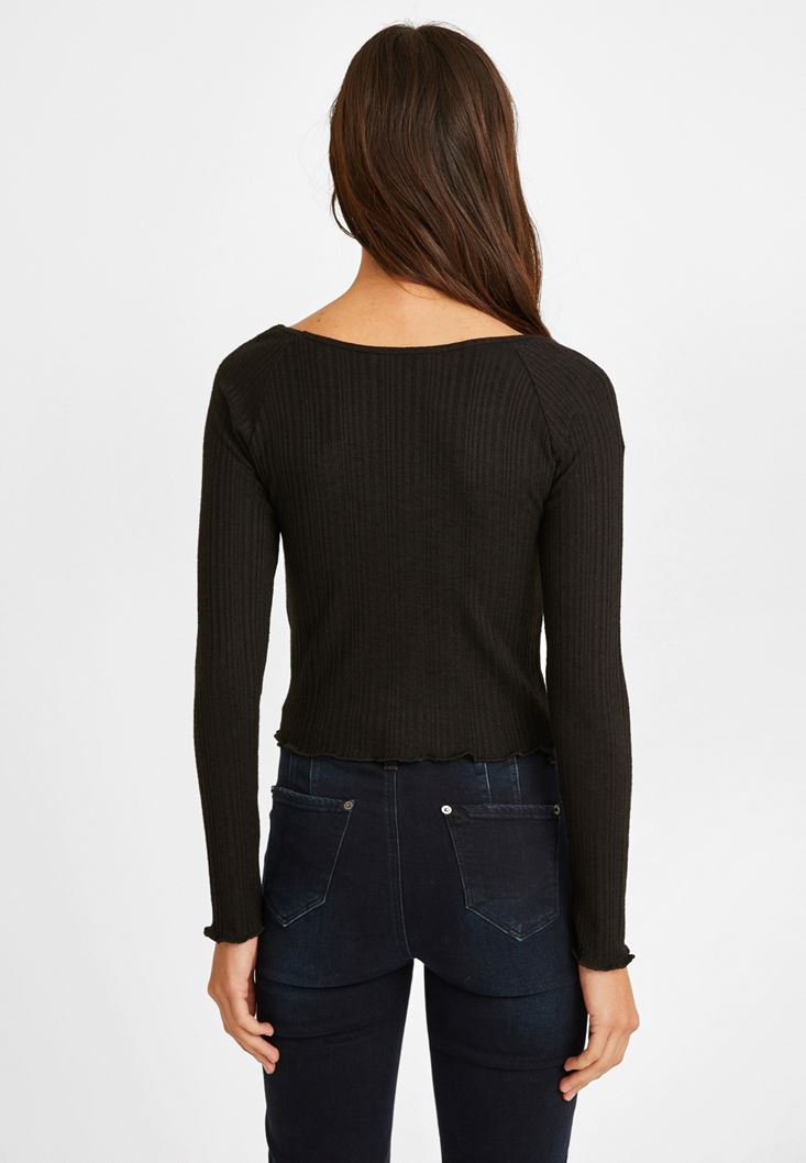 • Bayan Siyah Yaka Detaylı Kısa Bluz