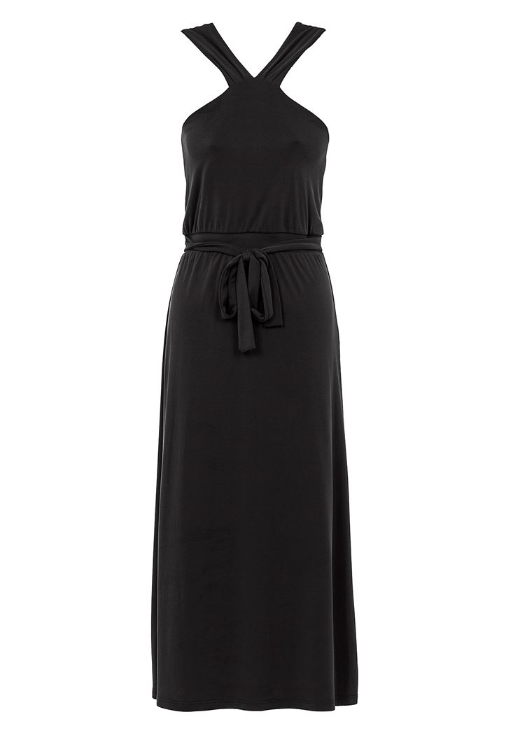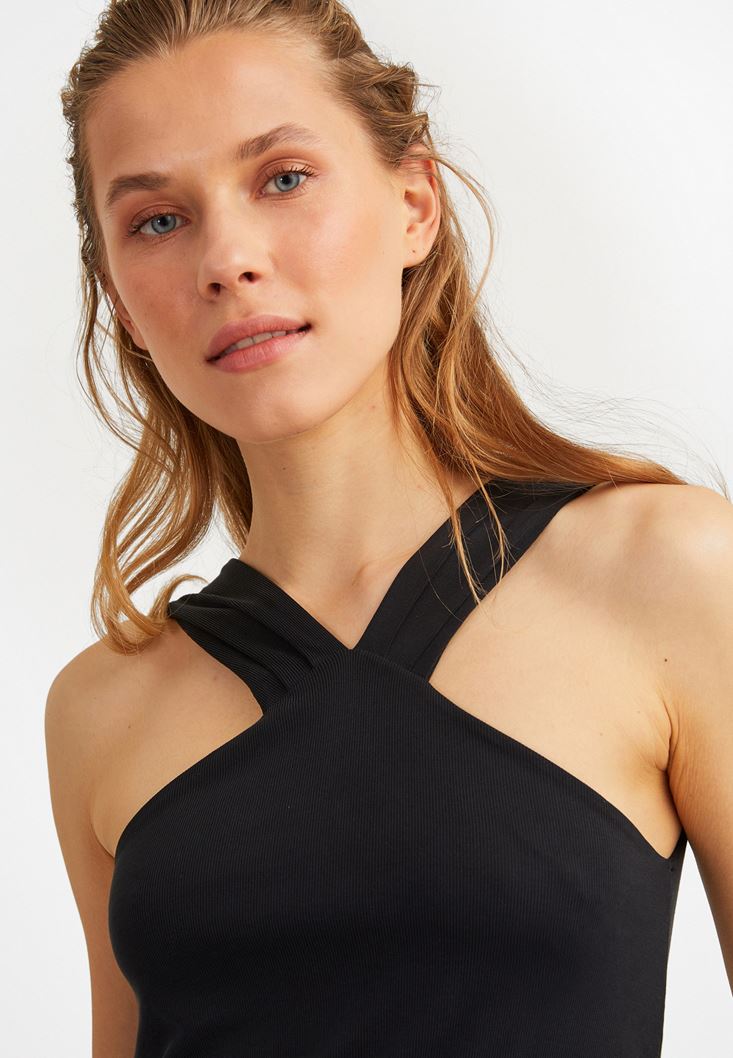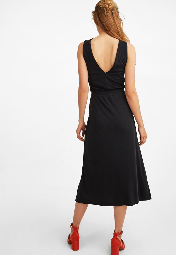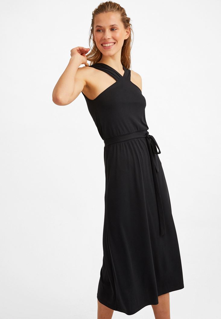 • Bayan Siyah Yaka Detaylı Midi Elbise