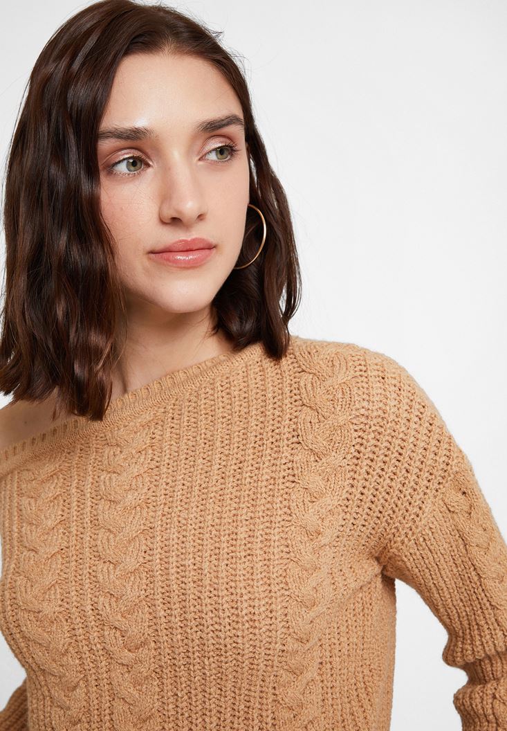 • Bayan Kahverengi Yaka Detaylı Örgü Triko