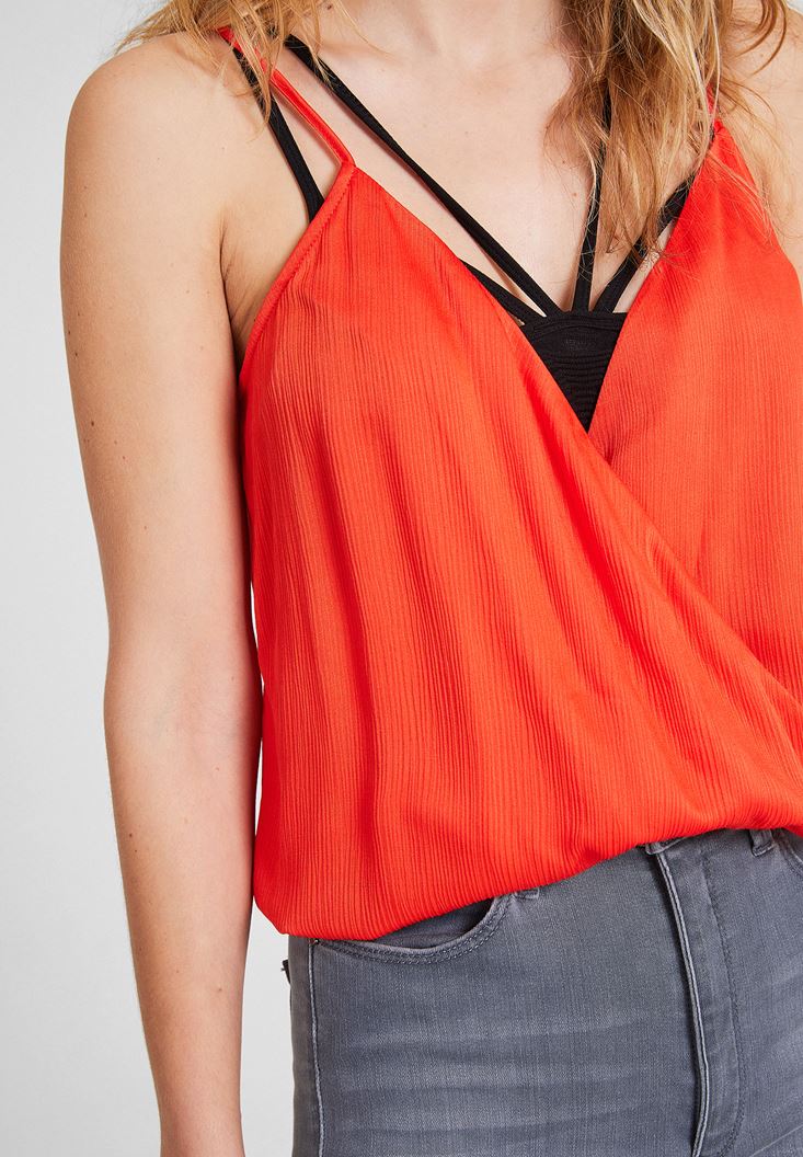 Yaka Detayli Saten Bluz modeli sadeligi ve çekiciligi basarili bir sekilde bir araya getiren bluz modelleri arasinda yer aliyor. Genis V yaka kesiminde kullanilan verev geçis tasarima hos bir hava kazandiriyor. Yaka kesiminin ortaya çikardigi zarif dekolte sayesinde boyun aksesuarlari ile destekleyebileceginiz bluz modelini jean pantolon, sort ya da etek gibi farkli parçalarla birlikte kullanabilirsiniz. Bluz modelinin dokusunda bulunan viskon kayin agaci özünden elde edilen dogal ve yumusak bir lif olmasi sebebiyle tasarimin kullanim konforunu ön plana çikariyor. Bu lifin yüksek nem transfer etme özelligi sayesinde en hareketli günlerinizde bile rahat hissedeceksiniz. OXXO'nun sadeligi siklik ile bulusturdugu tasarimlarindan birisi olan bluz modeli ile sikliginizi ön plana çikaracaksiniz.