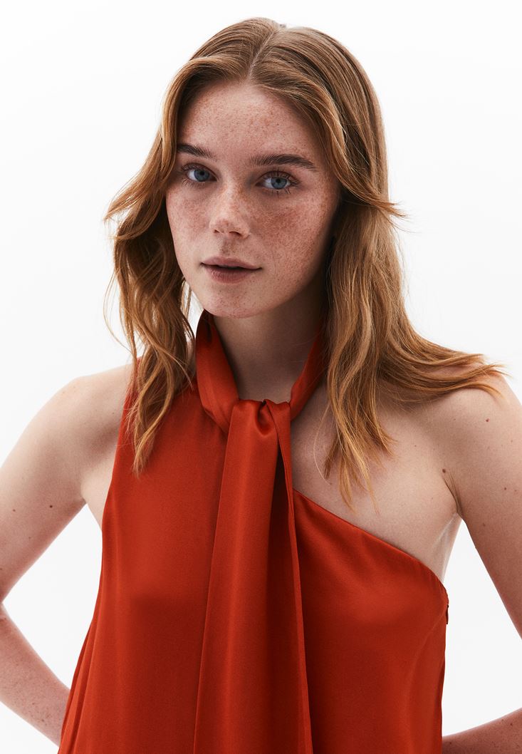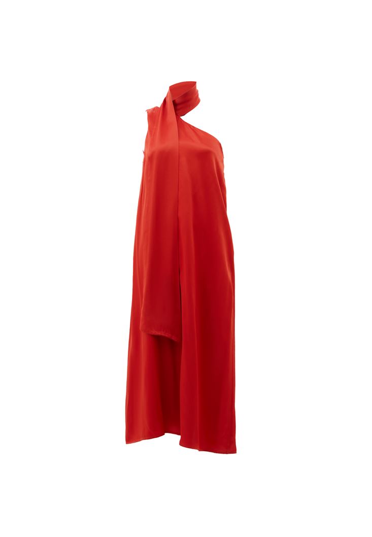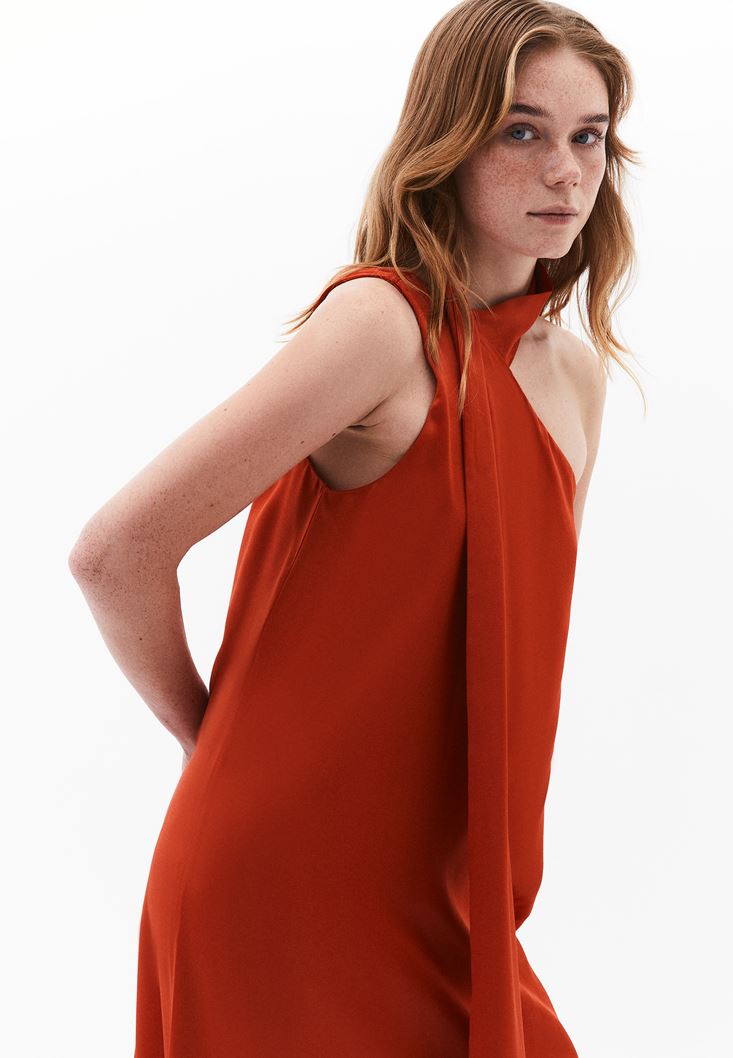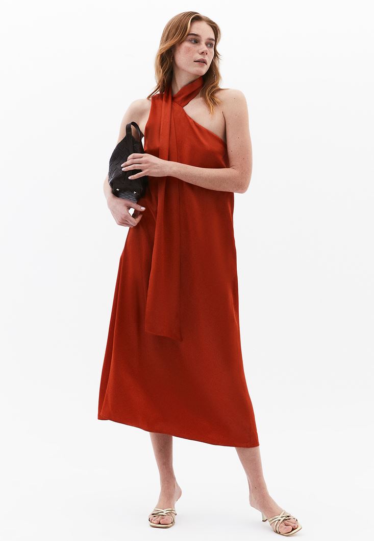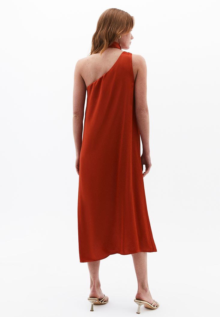 • Bayan Kırmızı Yaka Detaylı Saten Elbise