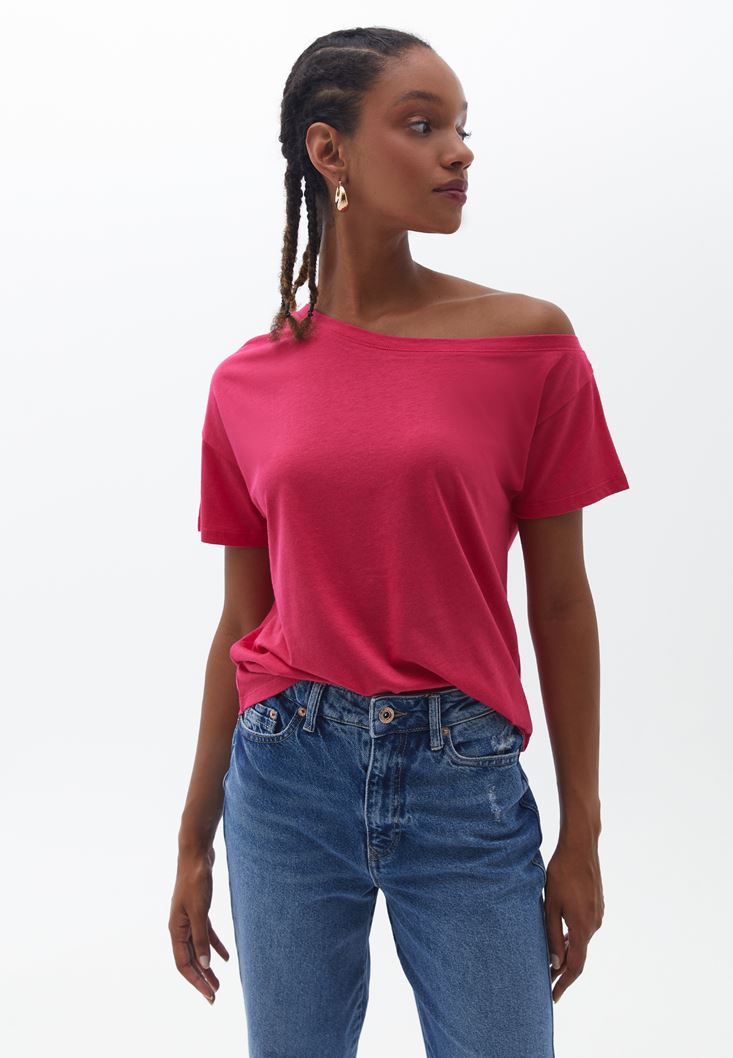 • Bayan Pembe Yaka Detaylı Tişört (MODAL)