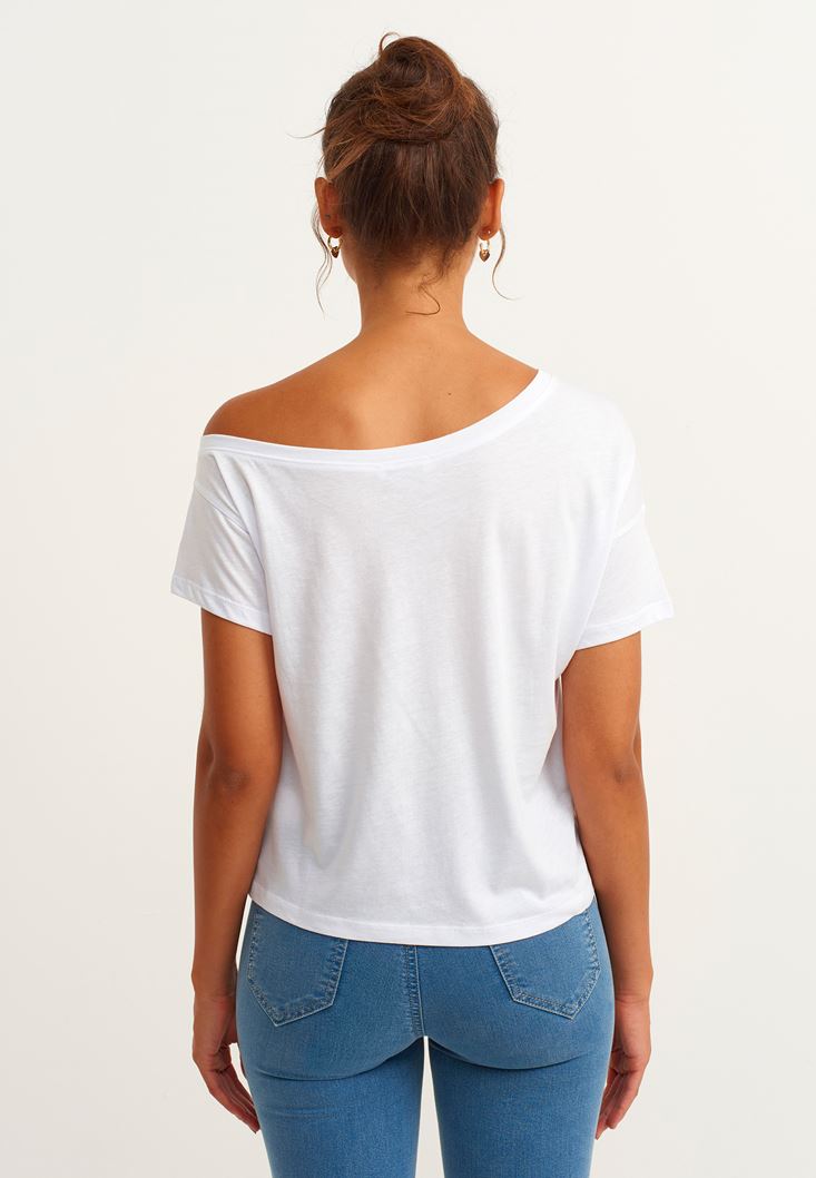 • Bayan Beyaz Yaka Detaylı Tişört