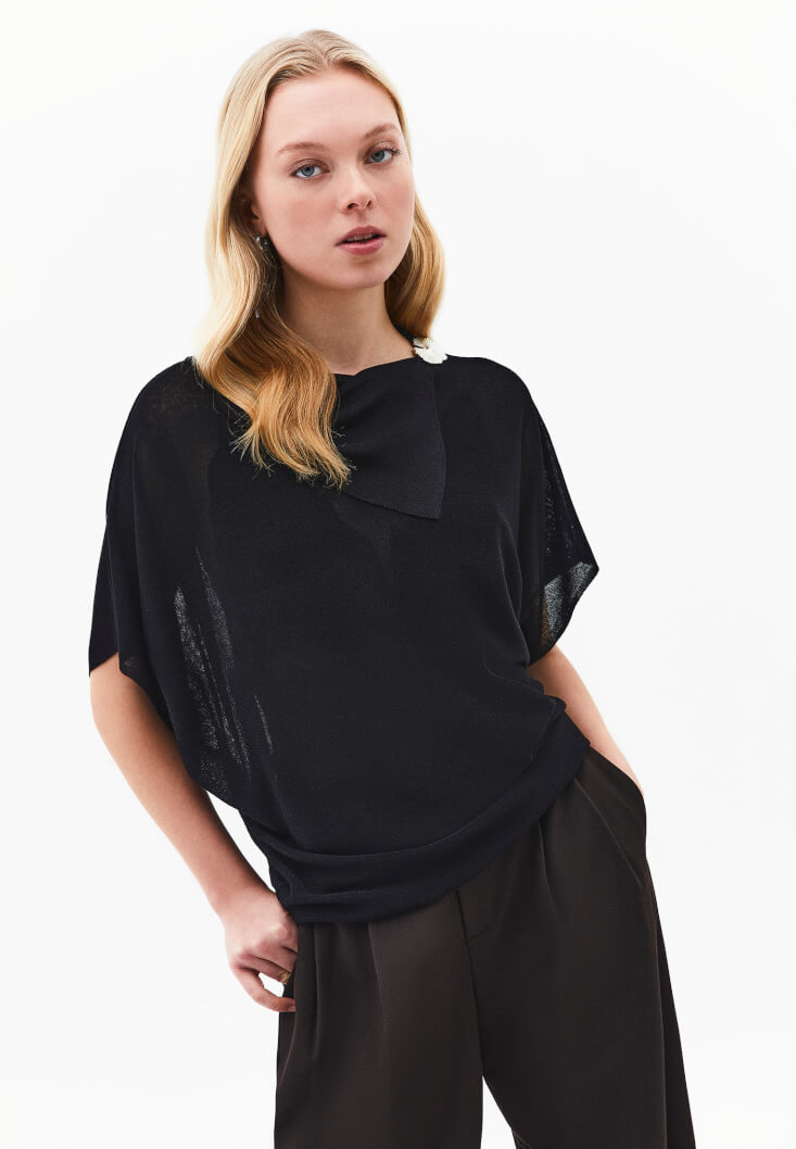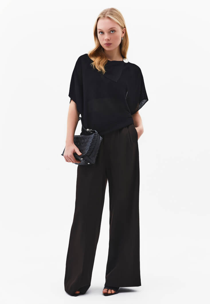 • Bayan Siyah Yaka Detaylı Transparan Bluz