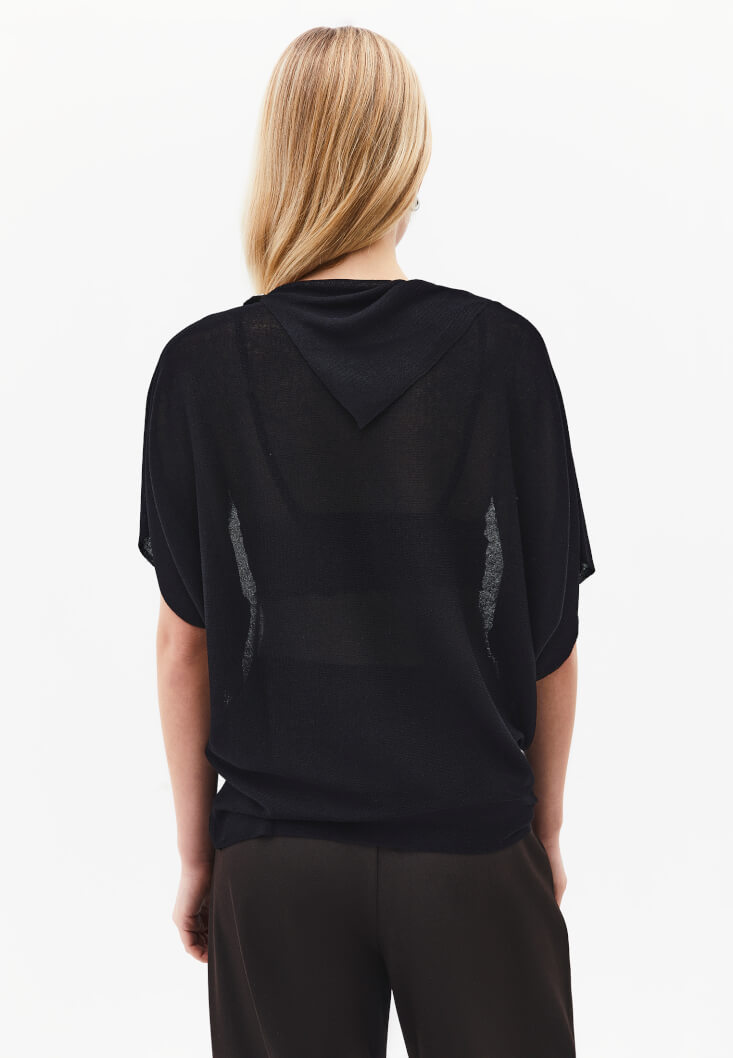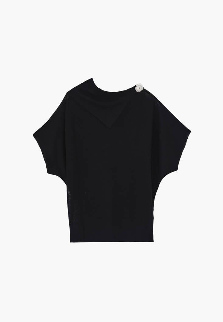 Siyah Yaka Detaylı Transparan Bluz