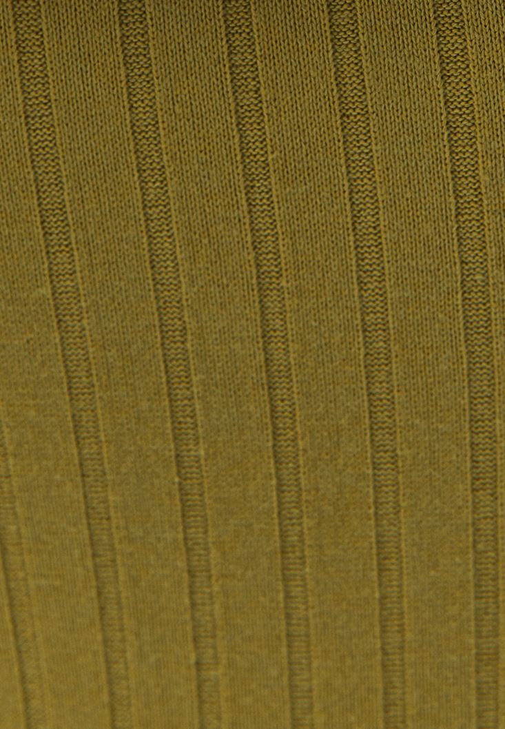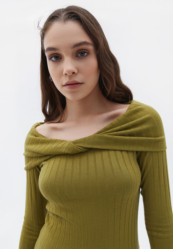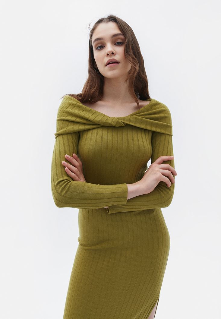 • Bayan Yeşil Yaka Detaylı Triko Elbise