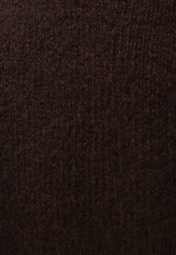 • Bayan Kahverengi Yaka Detaylı Triko Kazak