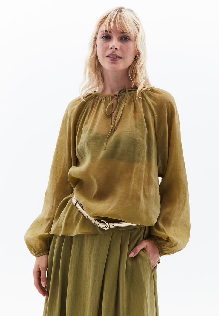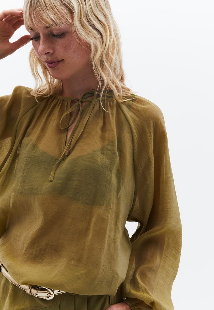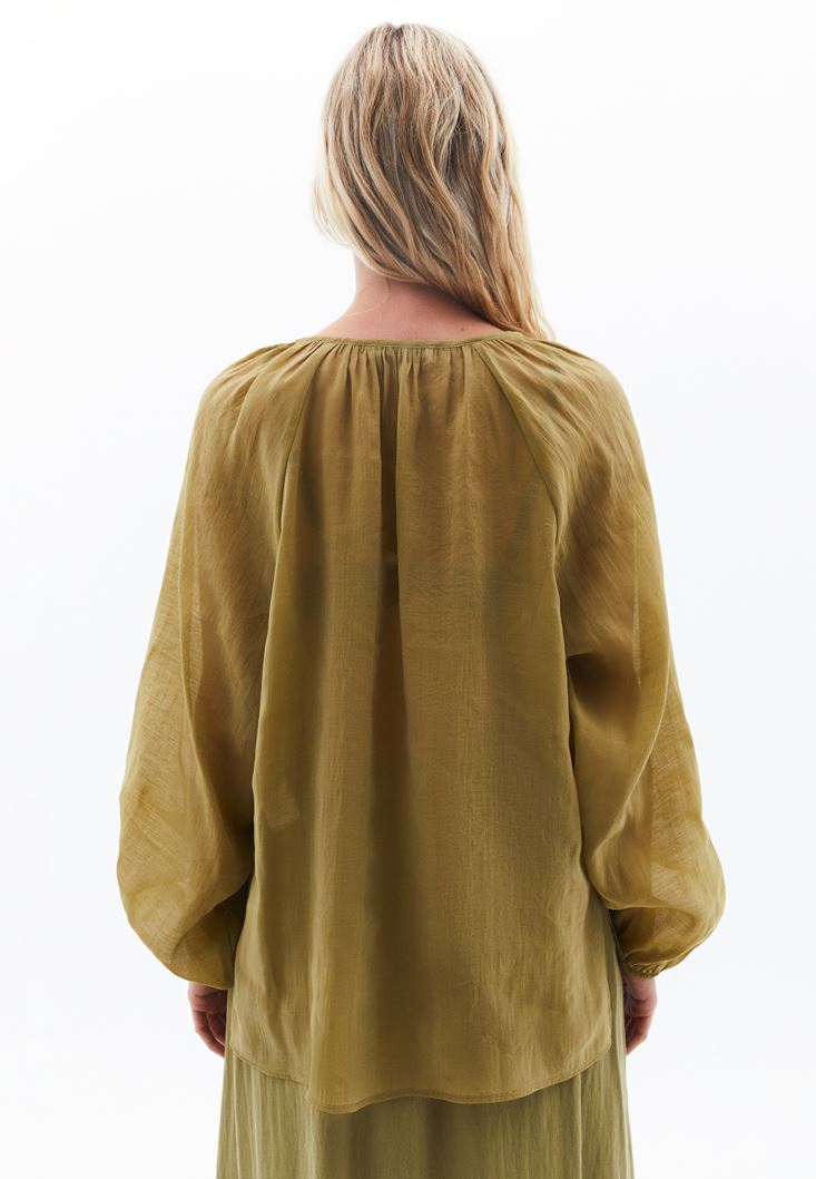Yeşil Yaka Detaylı Tül Bluz ( TENCEL™ )