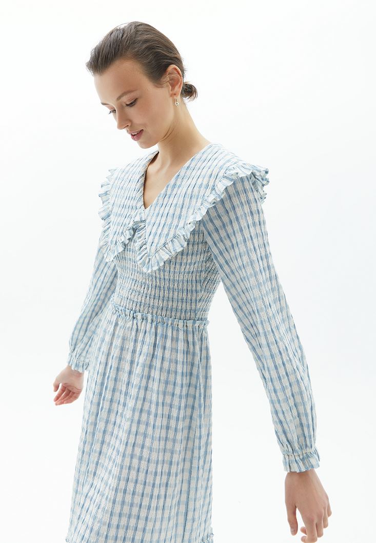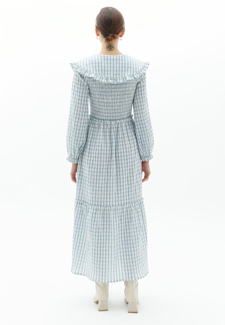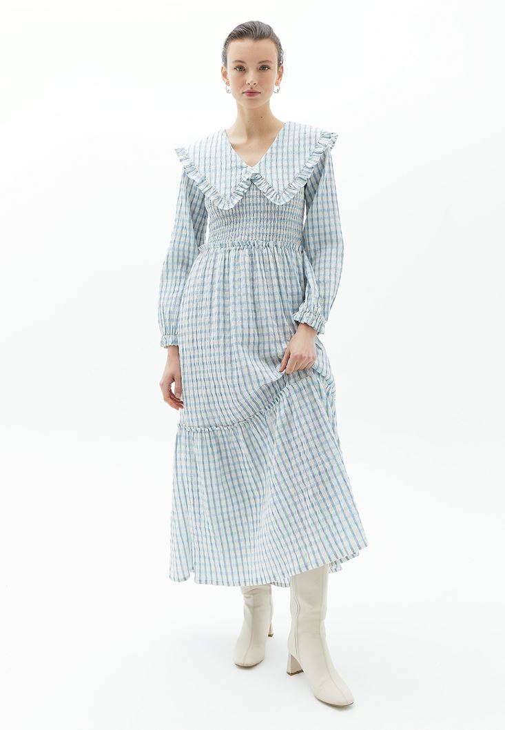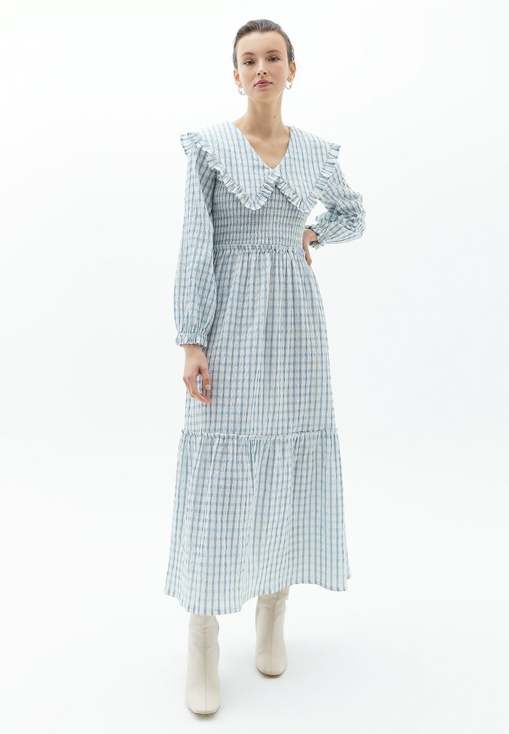Çok Renkli Yaka Detaylı Uzun Elbise