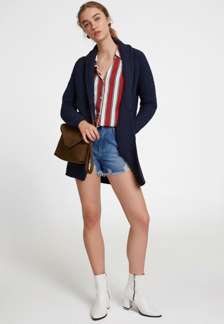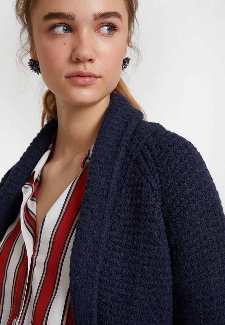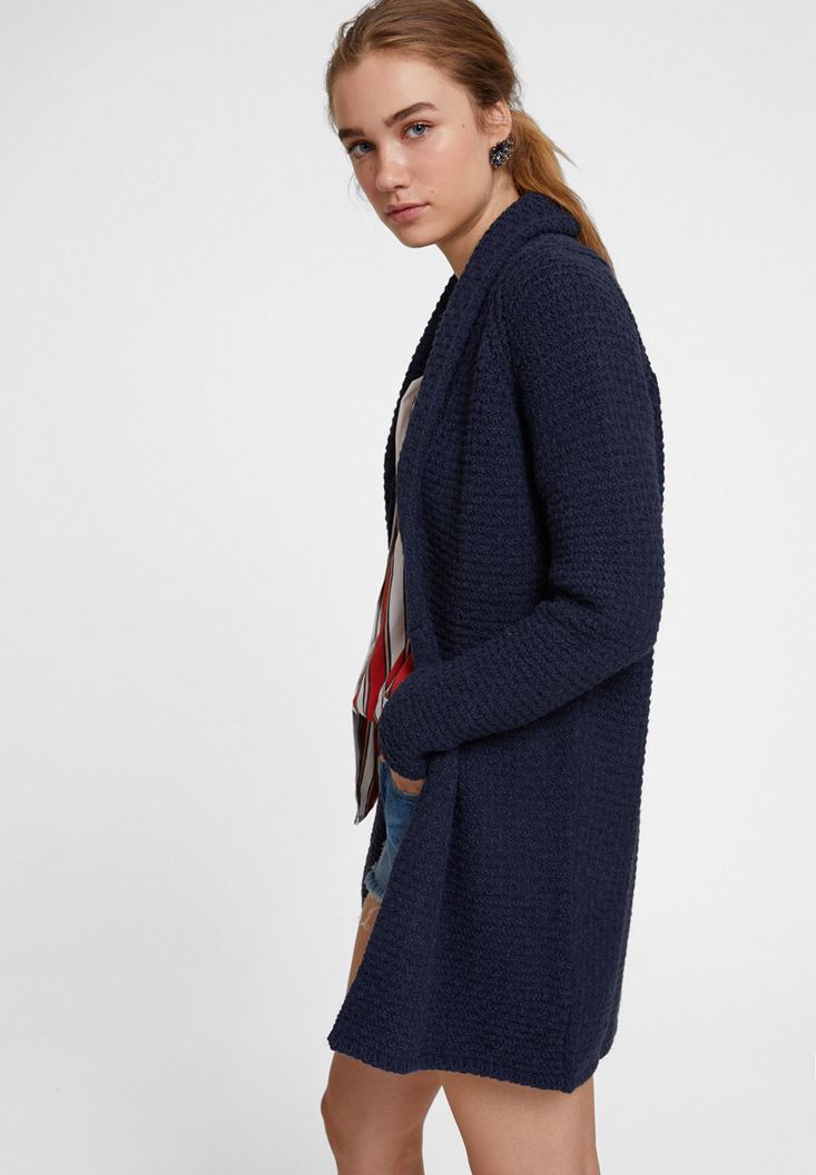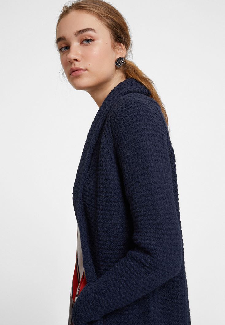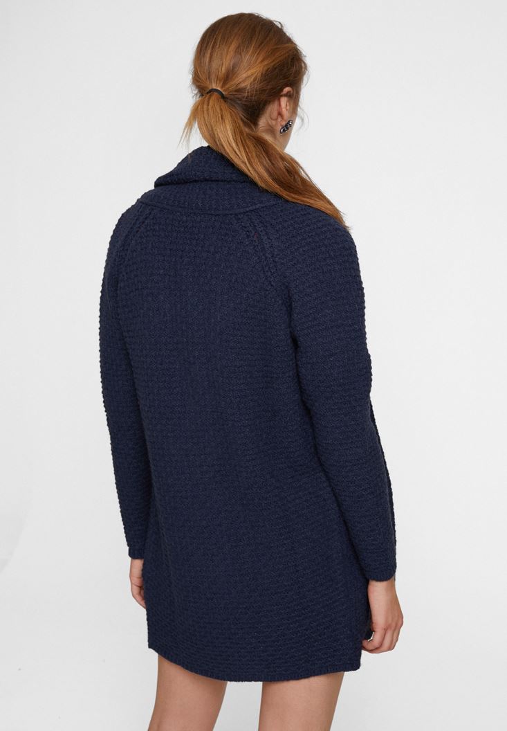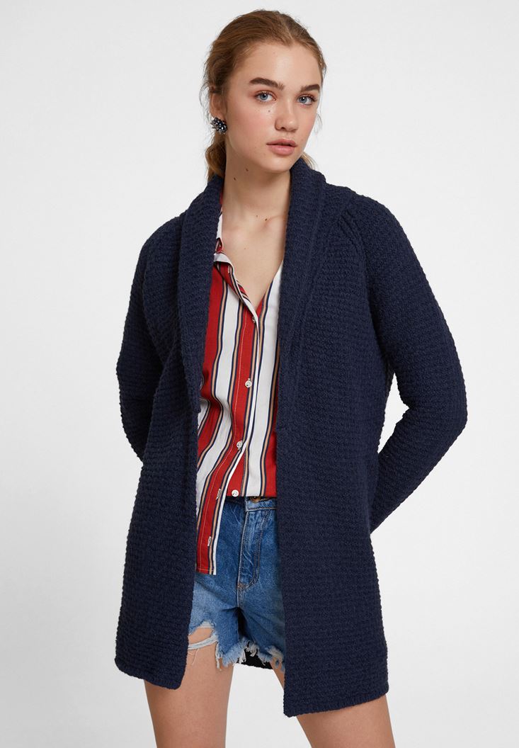 Lacivert Yaka Detaylı Uzun Hırka