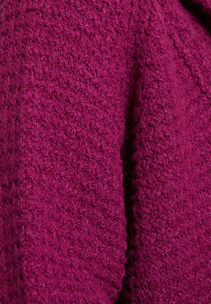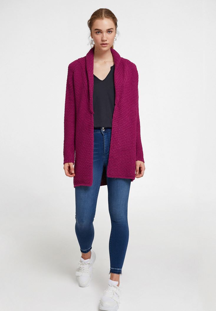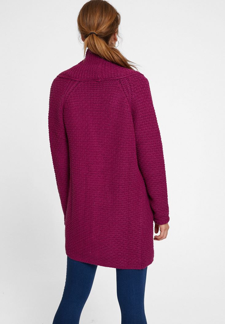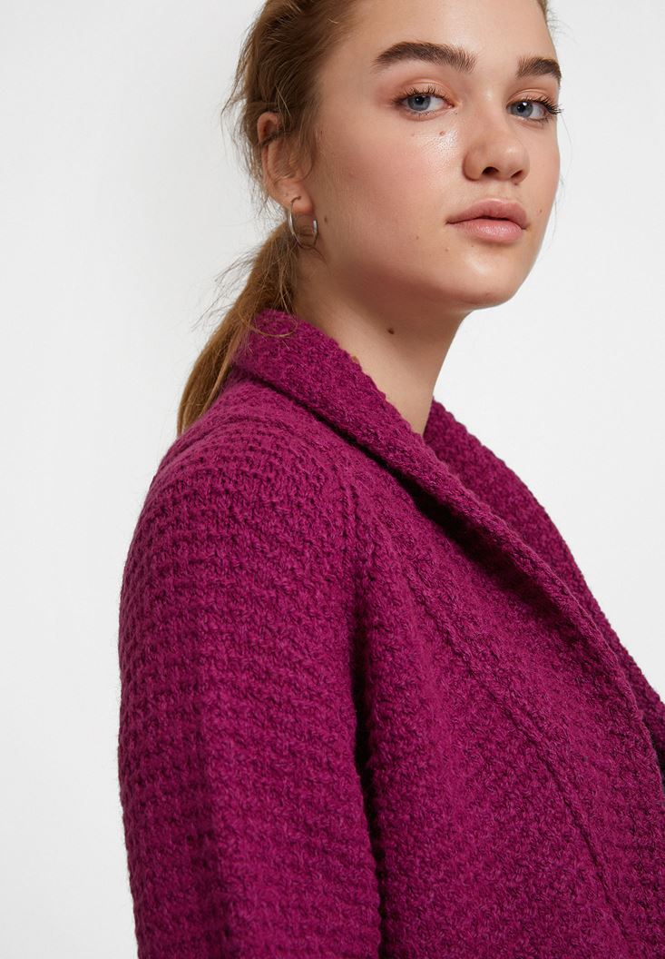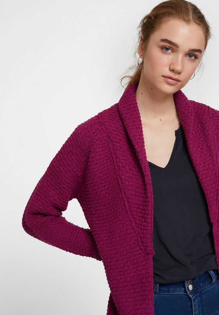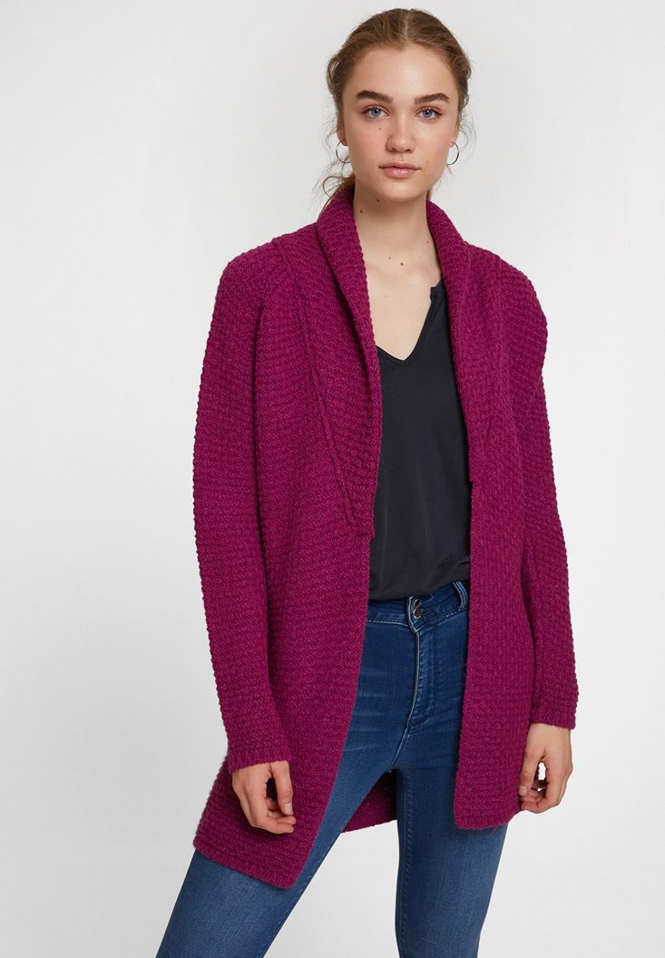 • Bayan Mor Yaka Detaylı Uzun Hırka