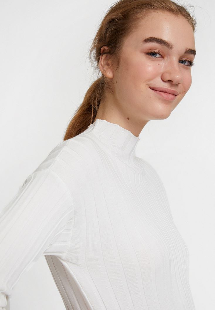 Yaka Detayli Uzun Kollu Triko modeli kesimi, dokusu ve zarafeti ile kombinlerinizde mutlaka yer vermekten keyif alacaginiz triko modelleri arasinda yer aliyor. Yarim balikçi yaka kesimi, kendinden fitilli dokusu ve vücudu saran yapisi ile kombinlerinize zarafet kazandiracak bu parça kisa sürede dolabinizin vazgeçilmezlerinden birisi olacak. Sahip oldugu viskon dokusu sayesinde uzun süreli kullanimlarda hareket özgürlügü ve konfor sunan triko modeli ile dikkat çeken bir siklik elde edebilirsiniz. Farkli tarzlara sahip kombinlerde rahatlikla kullanabileceginiz Yaka Detayli Uzun Kollu Triko modeli, OXXO’nun özgür ruhunu ve tasarim anlayisini en sade hali ile size sunan parçalardan birisi.