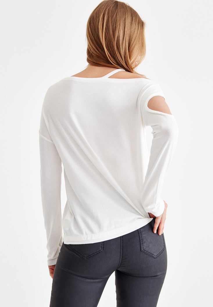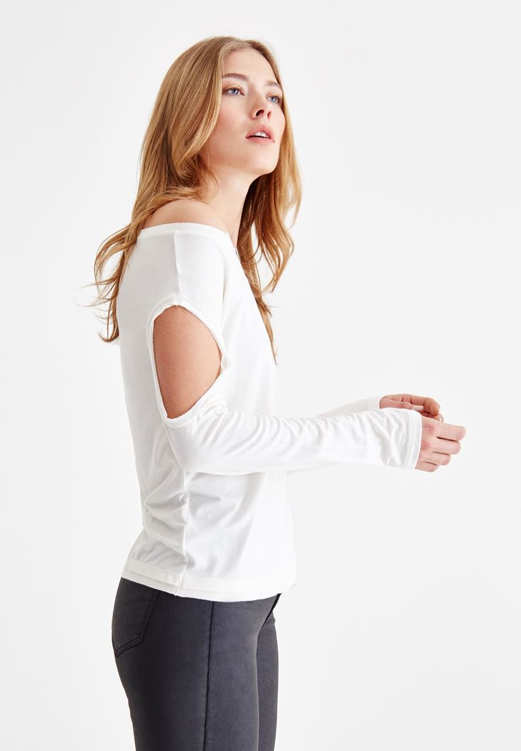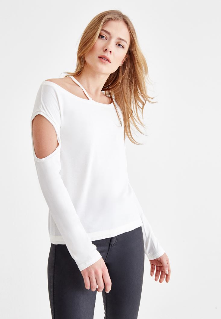 Yaka ve kol detayli tisört modeli sikliginizi ön plana çikaracak her unsuru basarili bir sekilde bir araya getiriyor. Kayik yaka kesime sahip olan tasarim yakinin ortasindan baslayan ve sirata kadar devam eden serit detaylar ile salas ama çekici bir görünüm elde etmenize yardimci oluyor. Omuz altlarindan baslayan ve dirsek üstüne kadar açilan dekolte detayi tasarimin enerjisini yükseltiyor. Viskoz dokunun konforlu kullanimini basarili bir sekilde yansitan tasarim sahip oldugu yüksek nem transfer özelligi sayesinde gün ya da gece boyunca kendinizi rahat hissetmenize yardimci oluyor. OXXO'nun sikliginizi detaylarla ve dokularla ön plana çikarmanizi saglayacak bluz modelleri arasinda yer alan tasarimi her zaman severek kullanacaginiz parçalar arasinda yer aliyor.