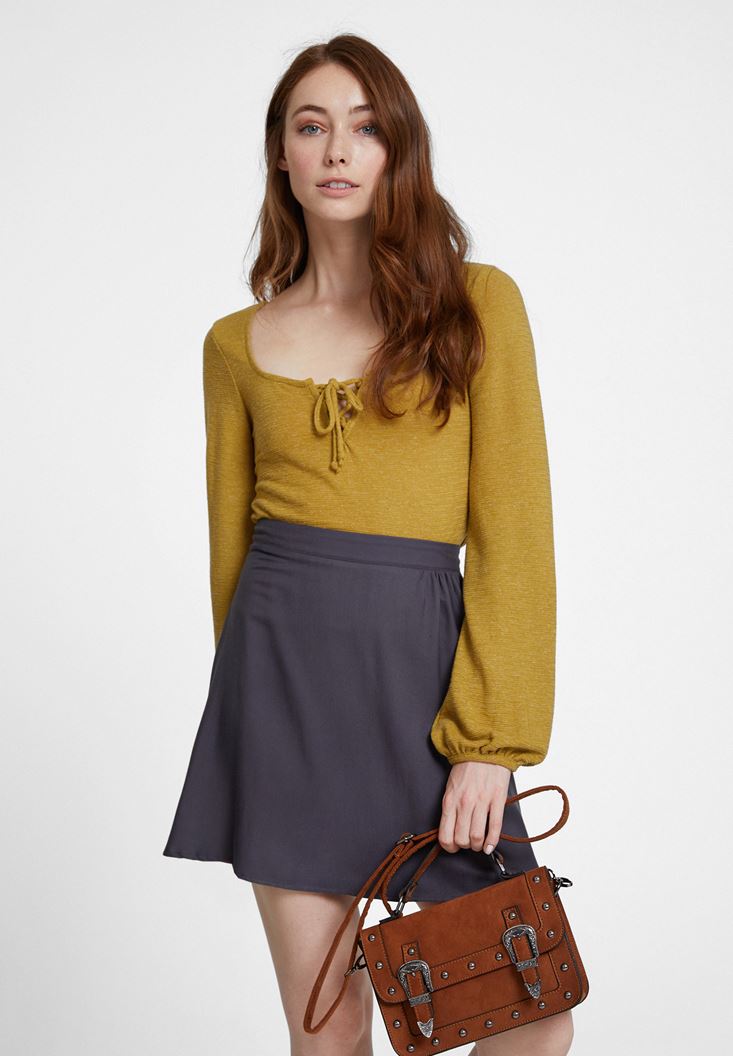 Oxxo Yakası Bağlamalı Uzun Kol Detaylı Bluz 2082233223