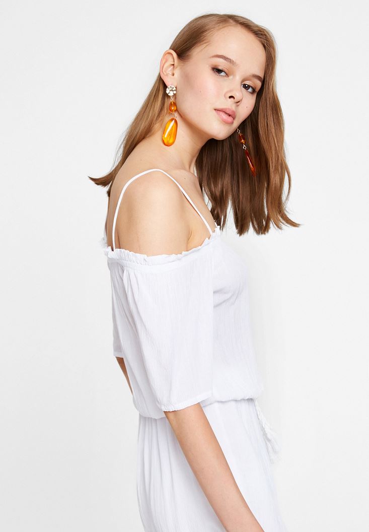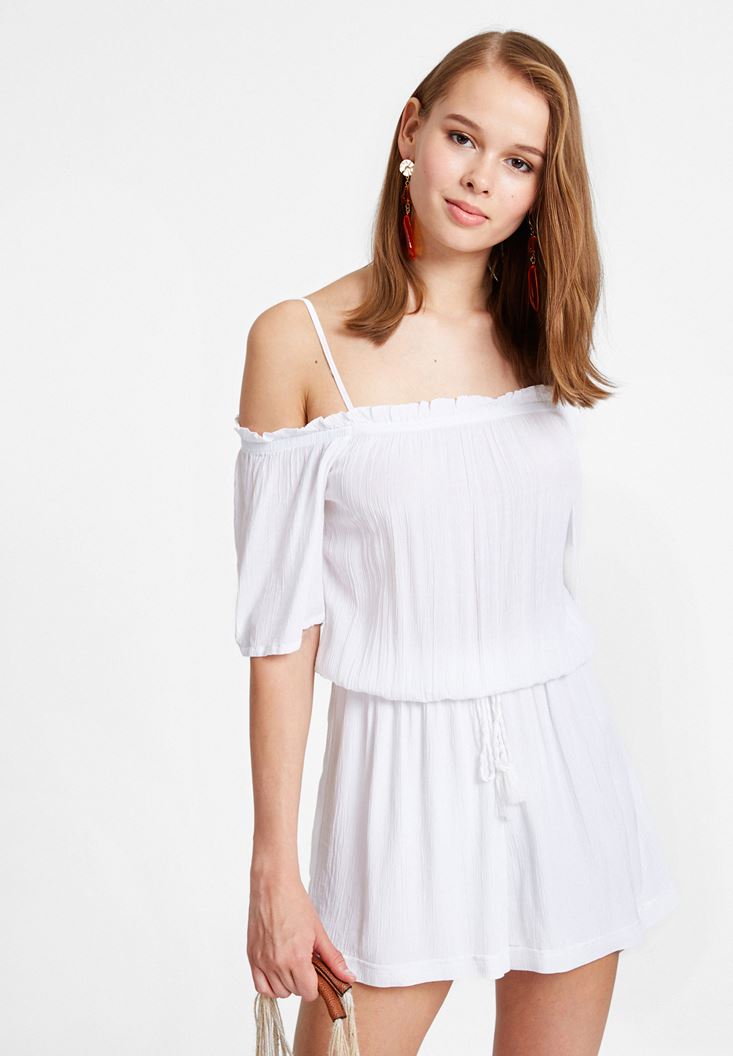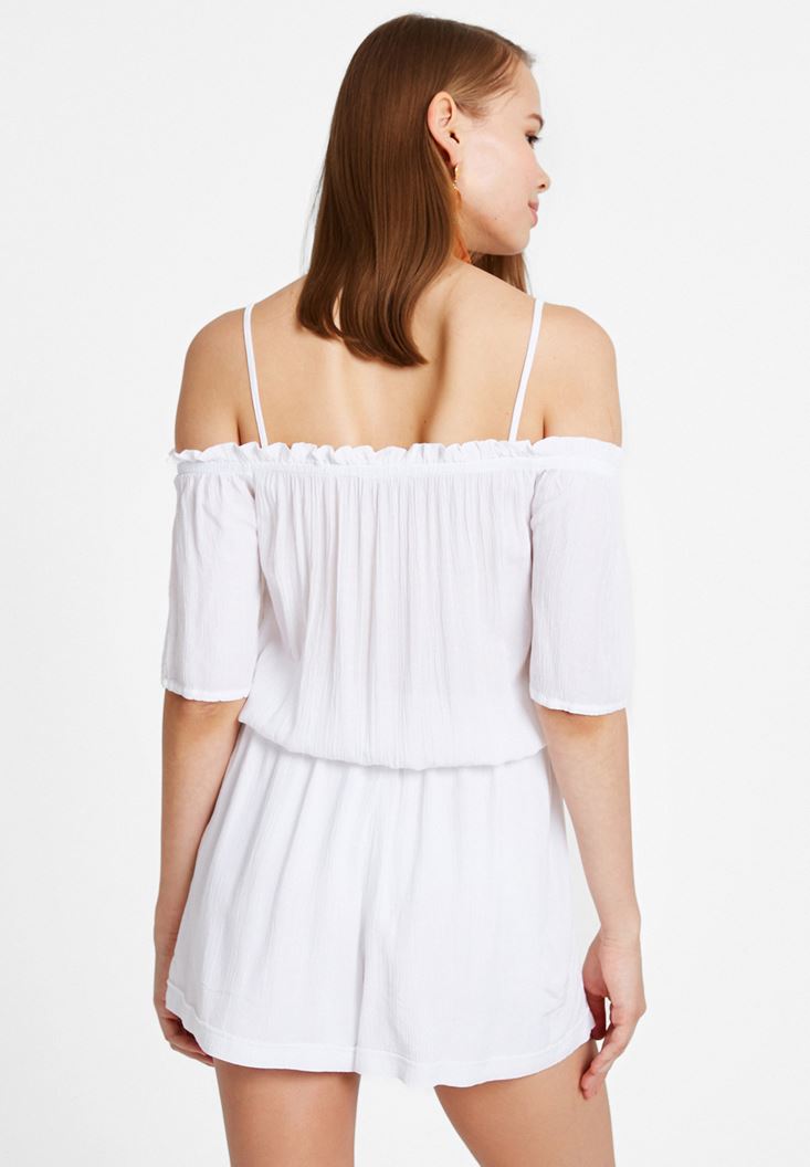 Beyaz Yakası Büzgülü Kısa Tulum