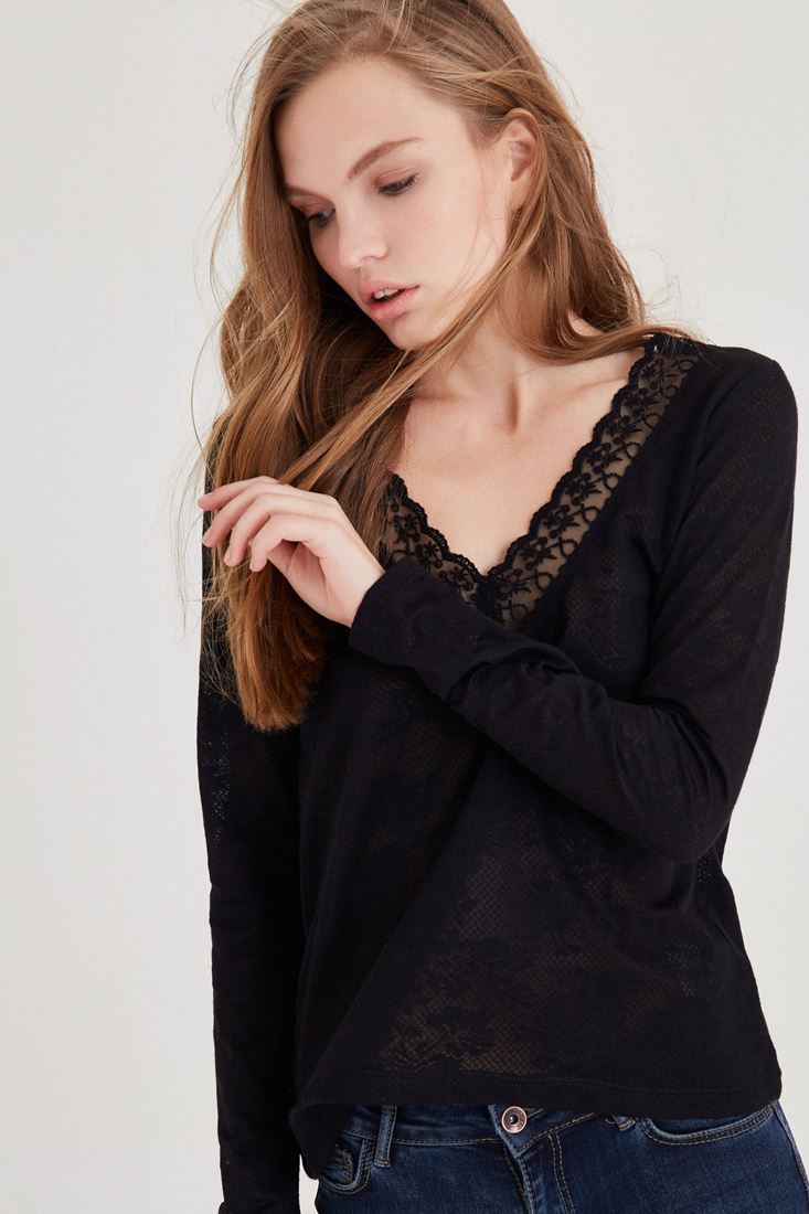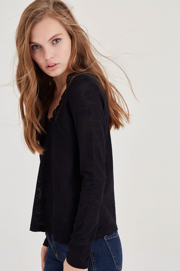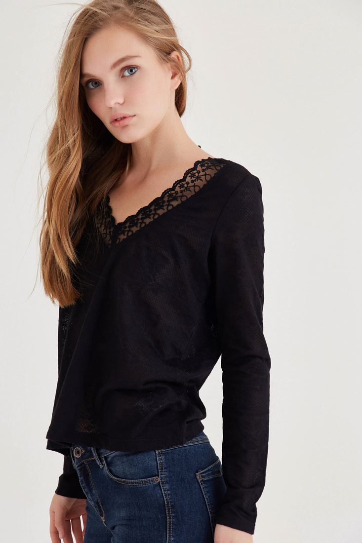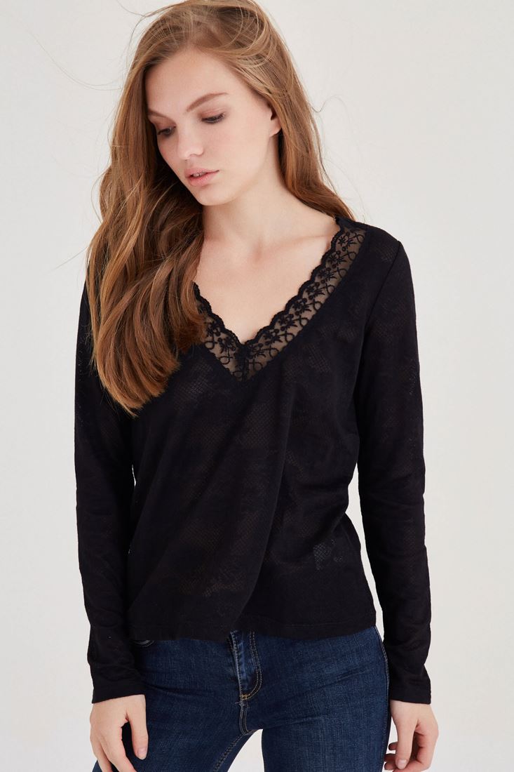 • Bayan Siyah Yakası Dantel Detaylı Bluz
