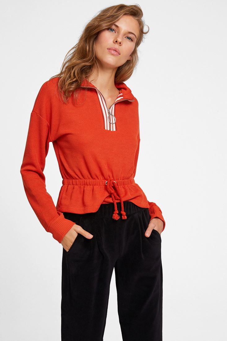 • Bayan Turuncu Yakası Fermuar Detaylı Sweatshirt