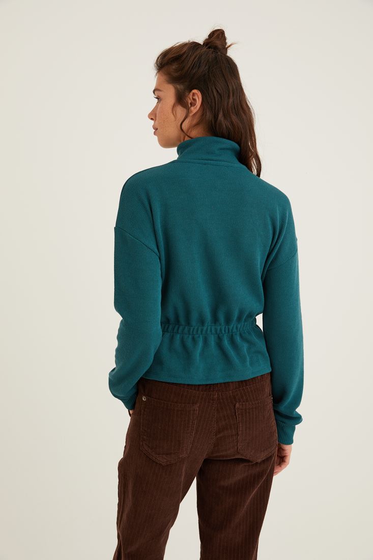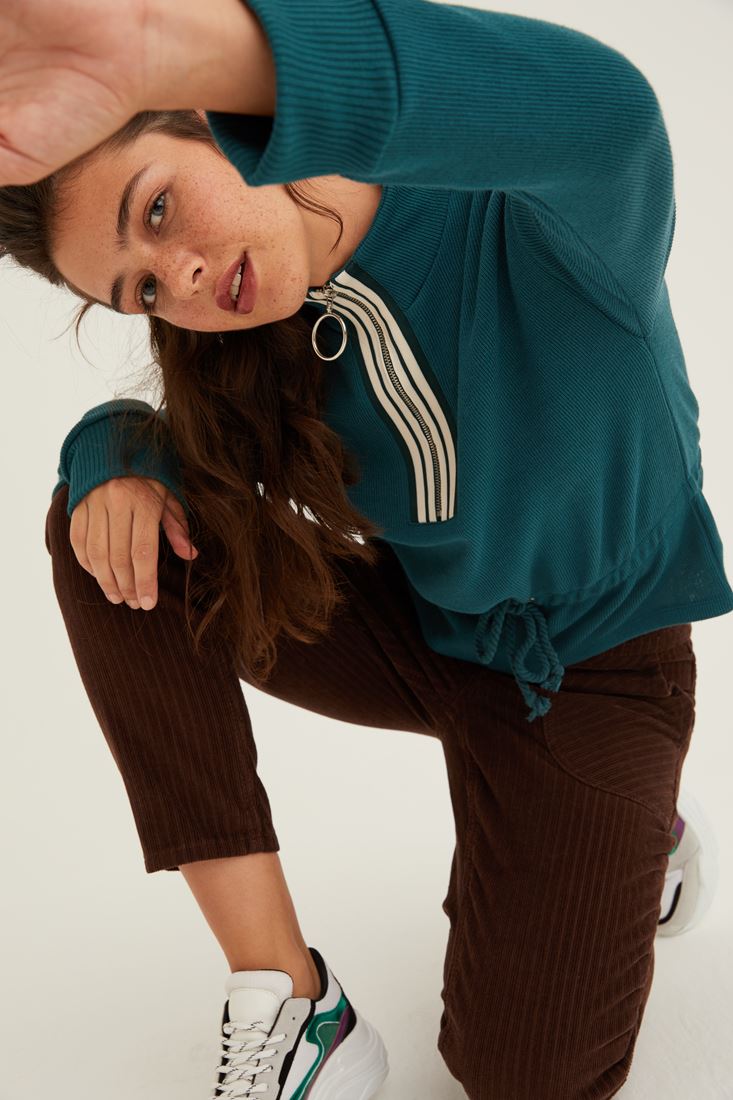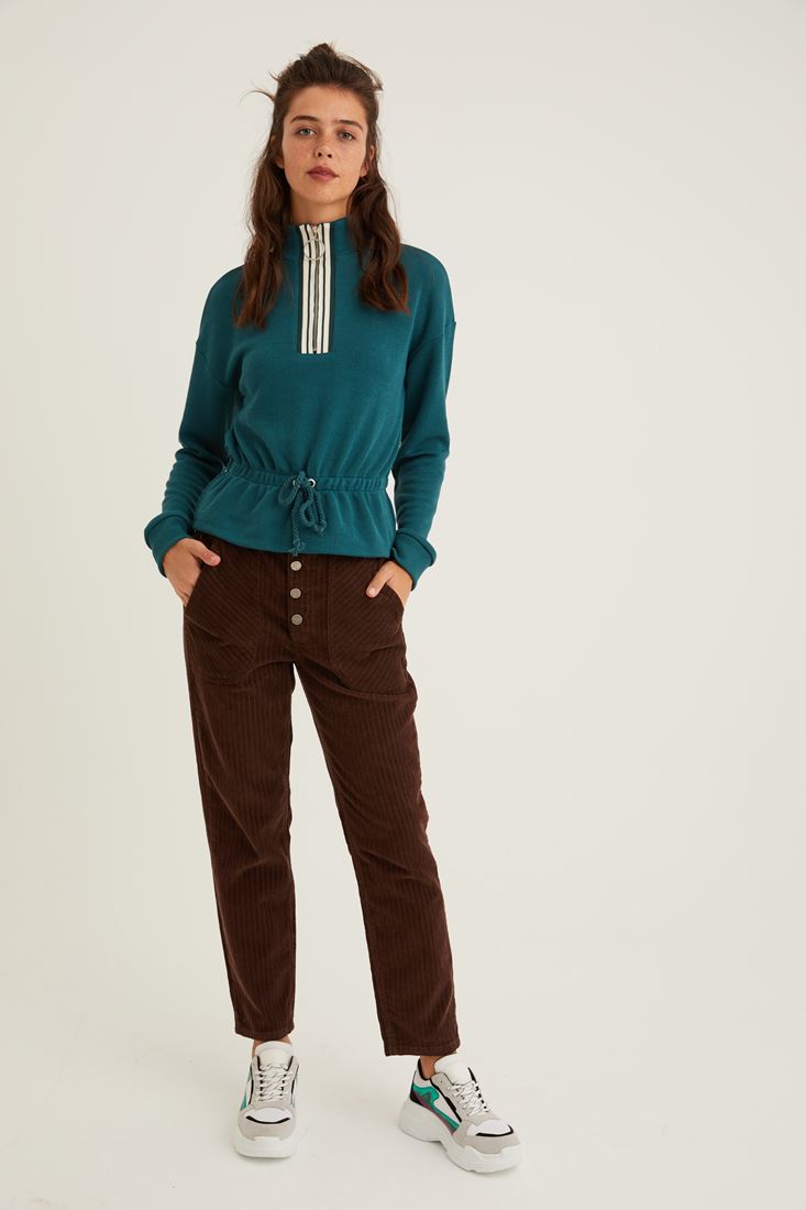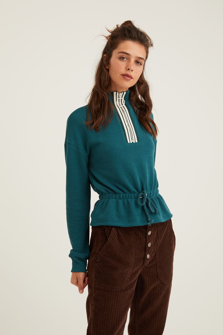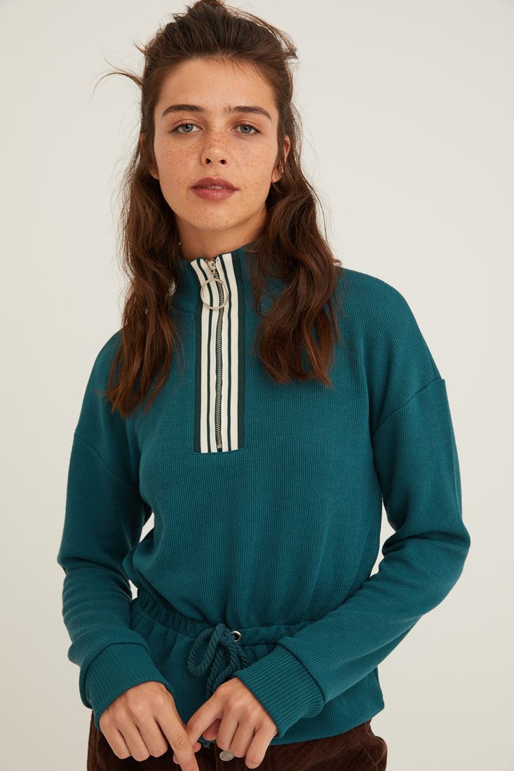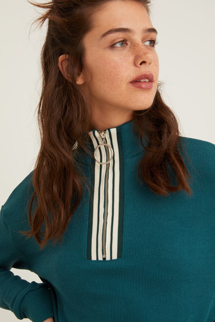 Yeşil Yakası Fermuar Detaylı Sweatshirt